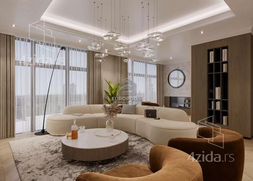Penthouse u luksuznoj novogradnji kod Cvetkove pijace, useljiv u martu 2025. godine. Ulaz u stan direktno iz lifta sa karticom. Odvojen spavaći blok sa tri spavaće i jednom master sobom. Komforan dnevni boravak sa kuhinjom i trpezarijom po principu open space sa terasom duž cele prostorije. Visina u stanu je 3.10m. U gradnji su korišćeni savremeni materijali, keramika prve klase, troslojni tarket parket, alu mil stolarija, blindirana ulazna vrata, sobna vrata medijapan. Grejanje je podno na toplotne pumpe, hlađenje fan coil. Cena je sa PDV-om. U cenu je uračunato jedno garažno mesto i jedno parking mesto pozzle sistem. PROSTORIJE: predsoblje (hodnik), degažman, dnevni boravak sa kuhinjom i trpezarijom, tri spavaće sobe i master soba sa sopstvenim kupatilom, vešeraj, kupatilo, toalet, terasa i dve krovne terase. Agencijska nadoknada iznosi 2%. .