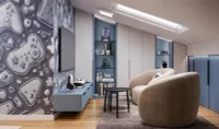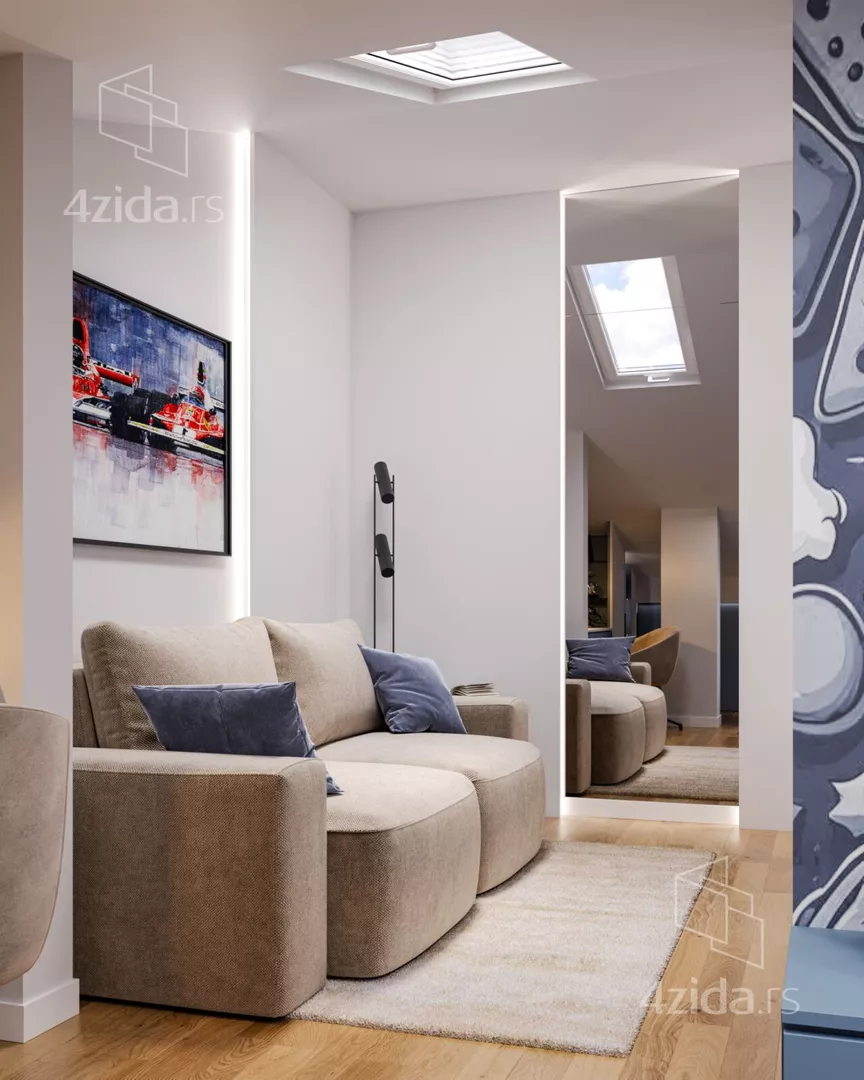 Svi projektovani elementi ovog nesvakidašnjeg stana dizajnirani su tako da naglašavaju vizuelni komfor koji ovaj prostor poseduje. Vizuru zauzimaju tri virtuelno parcijalna prostora: kuhinja, trpezarijski deo i dnevni boravak. Osim adekvatne prostorne komunikacije, osunčanost stana predstavlja izuzetan kvalitet. Sve je projektovano u cilju obezbeđivanja praktičnijeg, što bolje iskorišćenog prostor. Dnevna soba je se osunčava preko dva veća prozora i staklenim vratima koja predstavljaju izlaz na terasu.