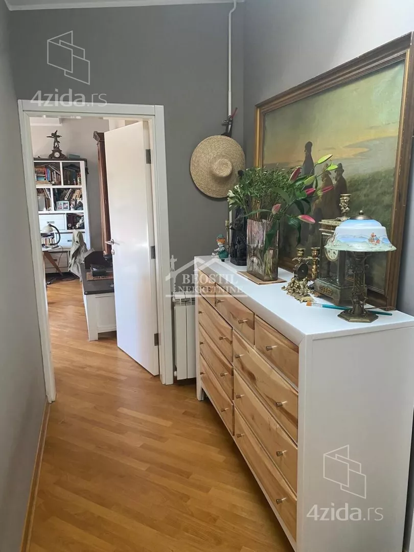 Prodajemo uknjižen trosoban stan novije gradnje (2014), u ulici Vojvode Stepe, kod Voždovačke crkve, na poslednjem 7. spratu, površine 88m2, sa centralnim grejanjem i fantastičnim pogledom. U prodajnu cenu je uključeno i uknjiženo garažno mesto od 13m2 (na klackalici). Ulazni deo stana se sastoji iz hodnika sa visokim plafonima i prirodnim osvetljenjem, iz kojeg se ulazi u sve prostorije; stan ima jedno veće kupatilo (sa prirodnim osvetljenjem), zatim prostoriju koja služi kao garderober, dve spavaće sobe (koje imaju kosine i krovne prozore i prostor za odlaganje u kosinama), dnevno-trpezarijski prostor sa kuhinjom i lođu sa pogledom na Dedinje i Bajfordovu šumu.Zgrada je izuzetno kvalitetno građena, stan se odlikuje odličnom zvučnom i toplotnom izolacijom, a na poslednjem spratu se pored ovog stana nalazi samo još jedan stan, što ga čini izuzetno prijatnim za stanovanje (lift ide do 6. sprata). Stan je u dobrom stanju, potrebno je higijensko krečenje i manja ulaganja i brzo je useljiv. Važno je još reći da se ova nekretnina nalazi na izuzetnoj lokaciji jer su u neposrednom okruženju fakulteti - FON, Fakultet političkih nauka, kao i osnovne, srednje i više škole. Stan je okrenut ka mirnoj ulici, dok se s druge strane zgrade, duž Bulevara oslobođenja, prostire Bajfordova šuma od Zvezdinog stadiona sve do Banjice. Sa garažnim mestom cena stana je 228000 i brzo je useljiv. Prikaz na mapi je informativnog karaktera i pokazuje približnu lokaciju. Agencijska provizija 2% od dogovorene kupoprodajne cene uključuje: istraživanje neophodno za pronalaženje adekvatne nekretnine, pomoć u pregovorima, provera dokumentacije, izrada ugovora/predugovora o kupoprodaji, organizacija primopredaje i sve što podrazumeva Zakon o posredovanju u prometu i zakupu nepokretnosti. Želimo Vam prijatnu kupovinu!