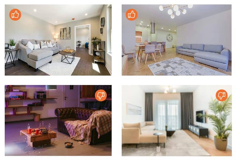 prirodno dnevno svetlo • otvoren prostor (širokougaoni kadar) • uklonjeni lični predmeti • ravne linije (bez krivljenja geometrije)