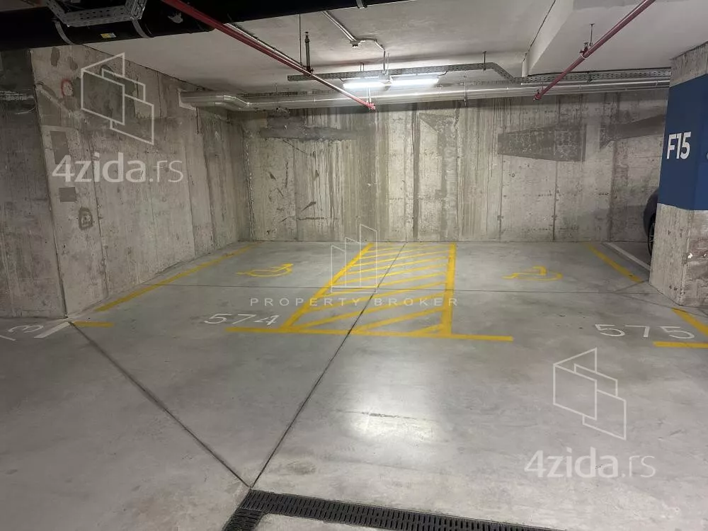 Beograd na vodi - garažno mesto u garaži koju dele zgrade BW Arcadia i BW Aurora. Nivo -1, blizu ulaza u zgradu i rampe za ulaz u garažu. Obezbeđenje 24/7, video nadzor, ulaz na rampu samo sa karticom. Pored rampe garaža ima i rolo vrata. Maksimalna bezbednost. Protivpožarni sistem i video nadzor na nivou cele garaže. Garažno mesto je natprosečne veličine, do stuba. Moguć je zakup susednog mesta, onda bi se zauzela površina izmedju dva stuba, od ukupno oko 33m2. U slučaju zakupa oba garažna mesta, cena je 250 Eur. Na odličnoj poziciji, blizu lifta i blizu ulaza u garažu. U oglašenu cenu nisu uračunati mesečni troškovi, koje zakupac plaća. Posrednička nadoknada koju plaća zakupac iznosi 50% prve mesečne zakupnine.