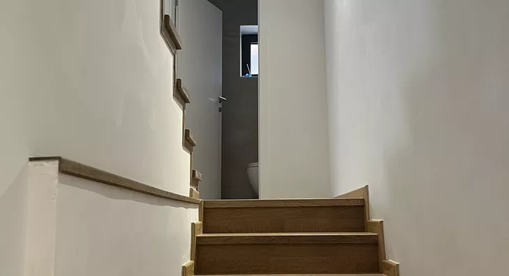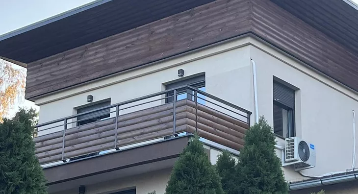 Дом утеплен графитовым пенополистиролом толщиной 20 см, что в сочетании с алюминиевыми окнами обеспечивает энергоэффективность. Перед домом есть парковка на 5 автомобилей.