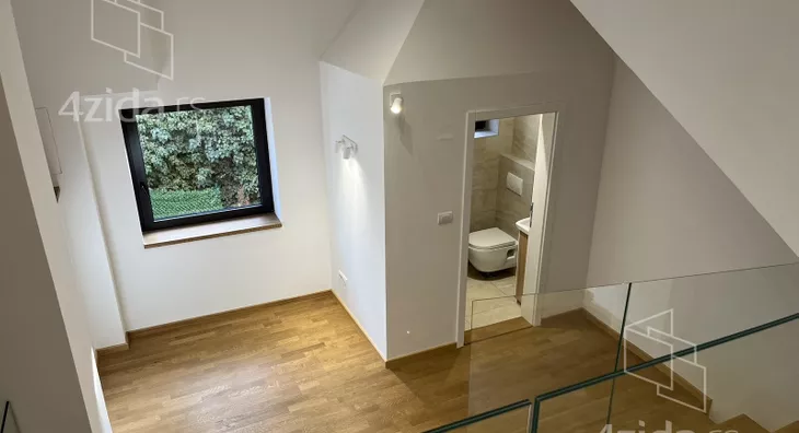 This modern house with a breathtaking view of Novi Sad is only a 10-minute drive from the city center. The 247m² property features a spacious living room, dining area, fully equipped kitchen, three bedrooms (one with a walk-in closet), a study on the gallery, and two separate bathrooms. Each terrace offers a stunning view of the city. The basement is ideal for recreational activities or can serve as commercial storage.
