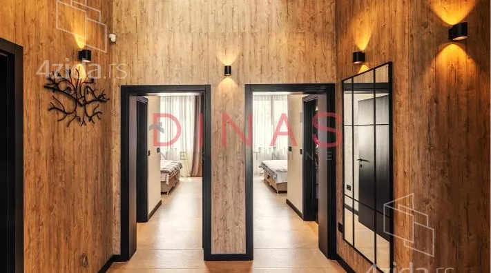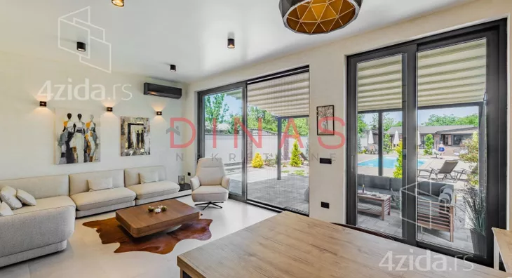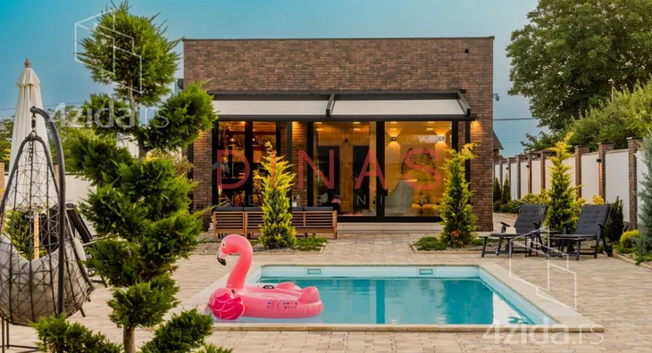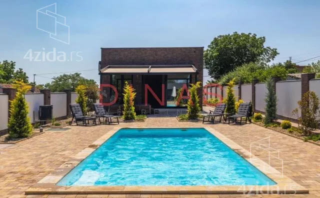 Izdaje se moderna, nova kuća u Čortanovcima, Lipov Lad za porodični život u prirodi. Kuća se nalazi na vrhunski uređenom placu od 1000m², sa zelenilom, stazama, roštiljem, letnikovcem, parkingom i bazenom 27m². Ima mogućnost korišćenja još jednog placa pored, van ograde, koji je isto 1000m² za baštovanstvo. Kuća je u jednom nivou kompletno i moderno opremljena i nameštena. Ima veliki dnevni boravak sa trpezarijom, odvojenu kuhinju i dve spavaće sobe. Svaka soba ima kupatilo i klima uređaj. Grejanje je podno na toplotne pumpe.
