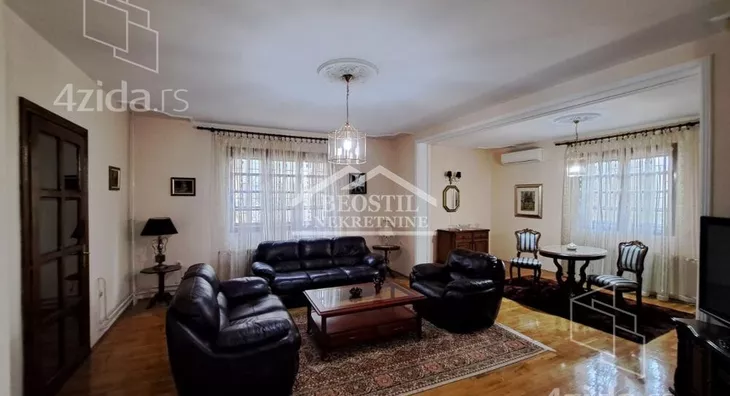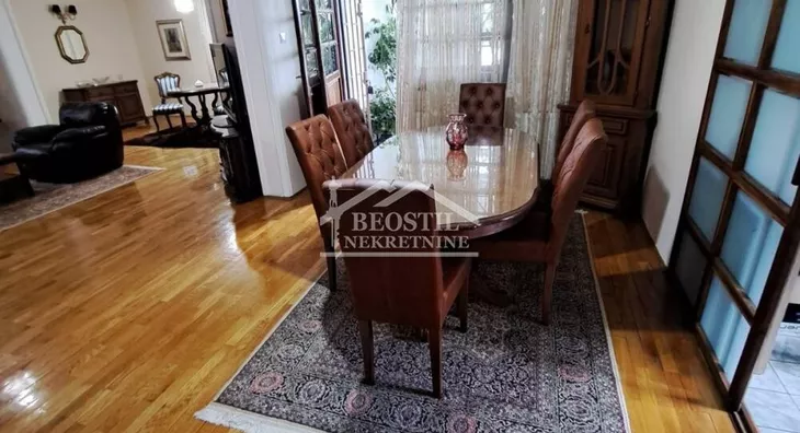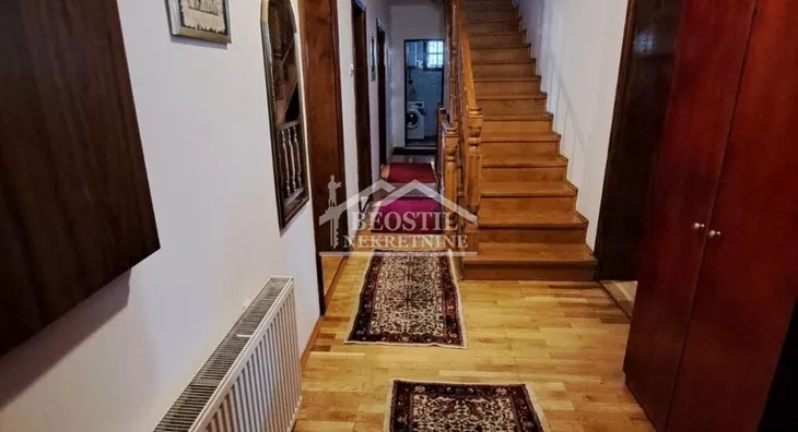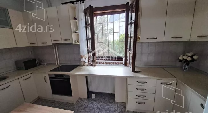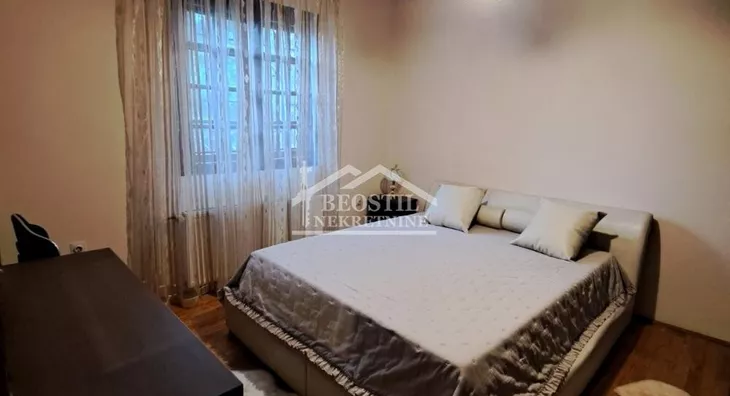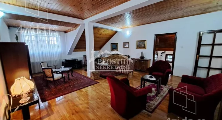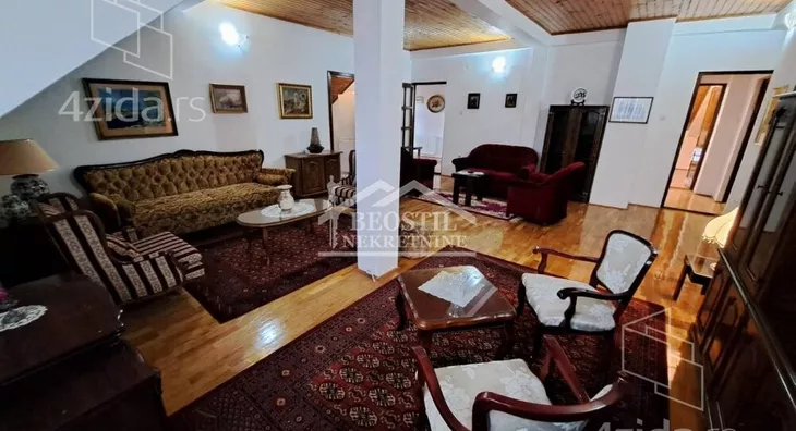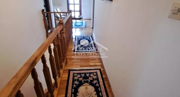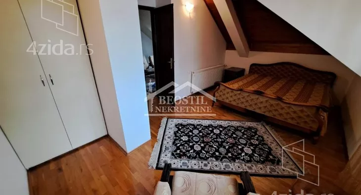 U ponudi ekskluzivna kuca koja se sastoji od prizemlja i sprata. U prizemlju se nalazi komforna dnevna soba u okviru koje se nalazi trpezarija, kuhinja i terasa, dok se u drugom delu nalaze dve spavaće sobe i toalet. Sprat se takodje sastoji od komforne dnevne sobe, i još tri odvojene sobe koje mogu biti radne ili spavaće kao i trpezarije i terase. Kuća se nalazi na placu od 13 ari sa prelepim dvoristem, parking mestima i garažom za dva veća vozila. Na odličnoj lokaciji u blizini Belog Dvora. Agencijska provizija 50% od prve zakupnine.