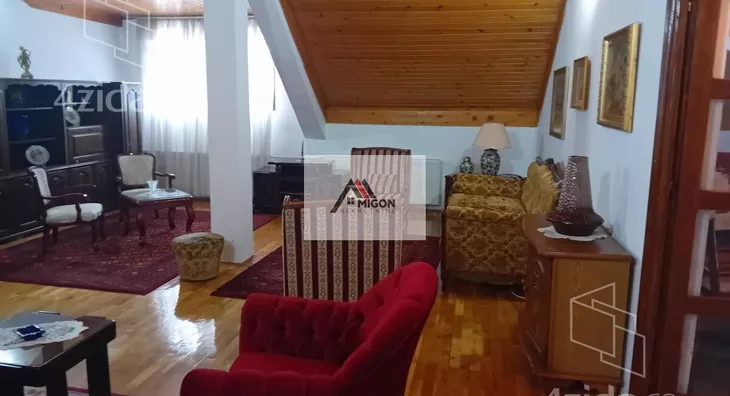 Izdaje se kuća sa prelepim dvorištem sa dva garažna mesta za velika vozila od 50m2 i dva parking mesta, tri terase, zastakljenom baštom