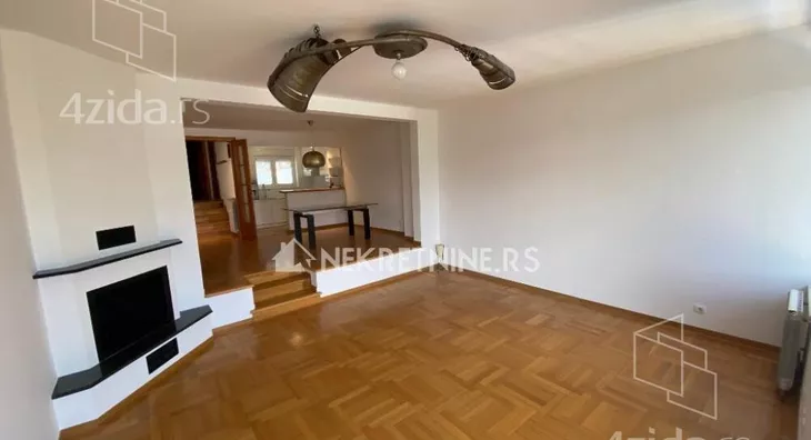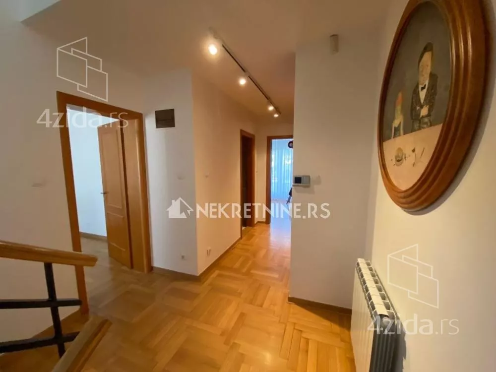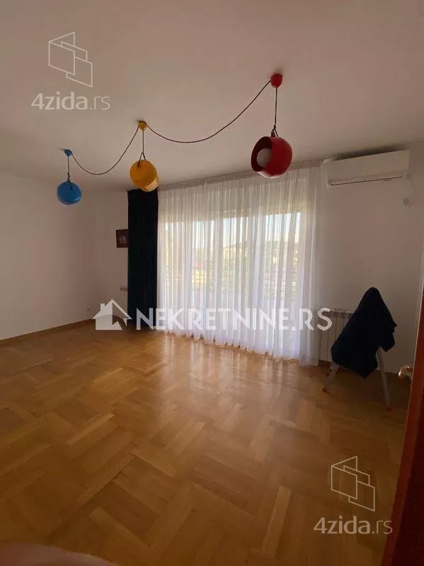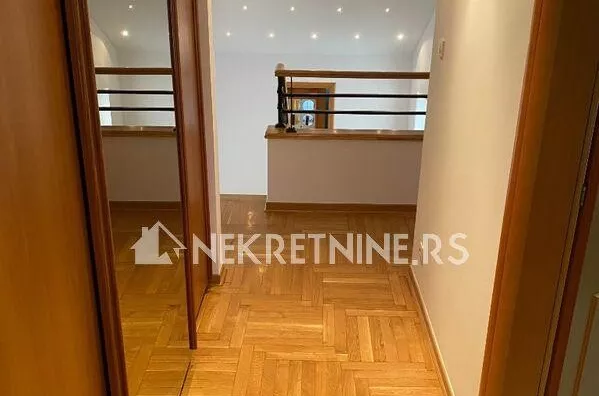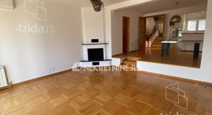 Porodična kuca u nizu na 4 nivoa, sa garažom za dva automobila, dve dnevne sobe, dve kuhinje, četiri spavaće sobe, dva kupatila, dva toaleta, velike terase i lepo dvorište. Odmah useljivo. Agencijska provizija je 50% od ugovorene cene zakupa.