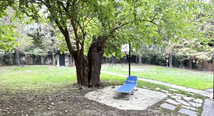The house is equipped with all modern amenities: central gas heating (metered), three air-conditioning units, internet, cable TV, telephone, intercom, and alarm system. A parking space is available within the yard.