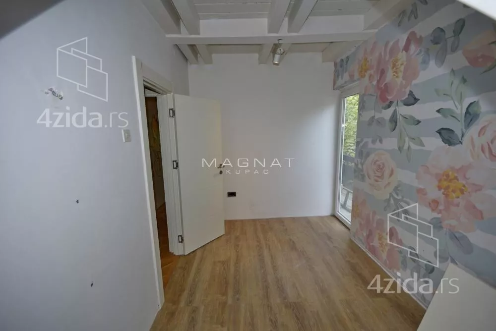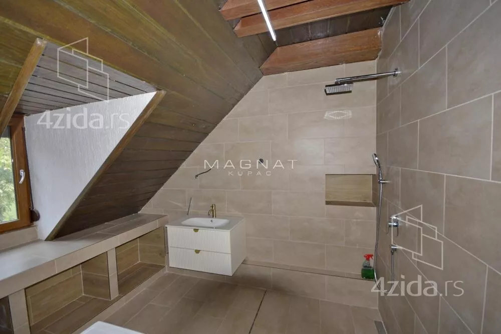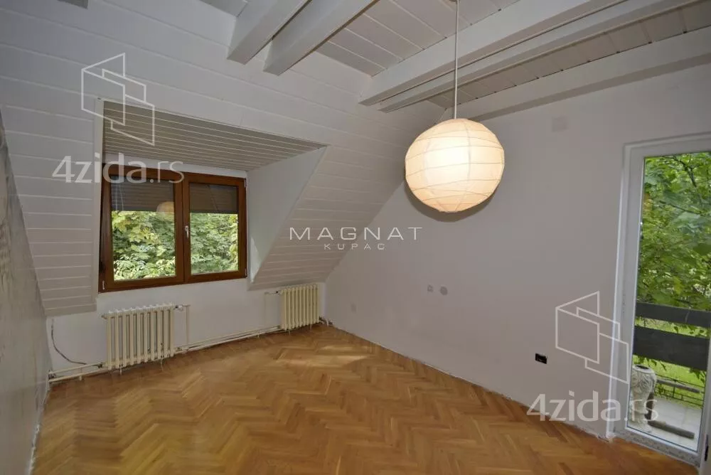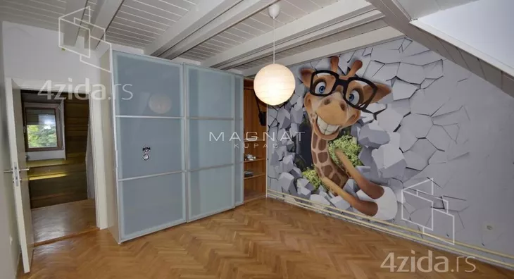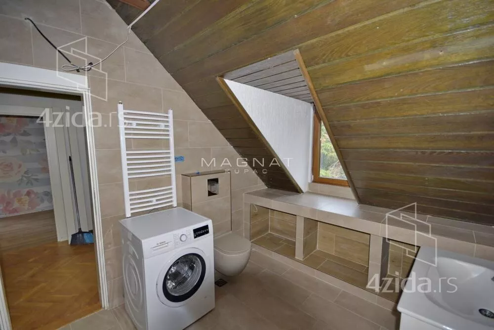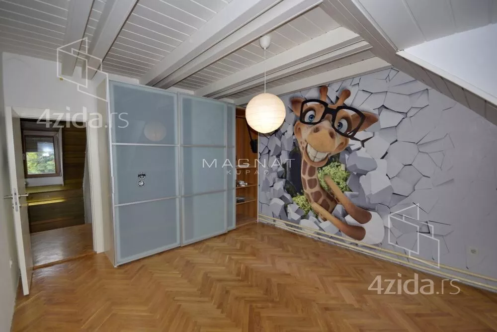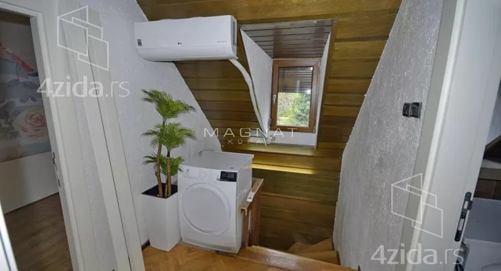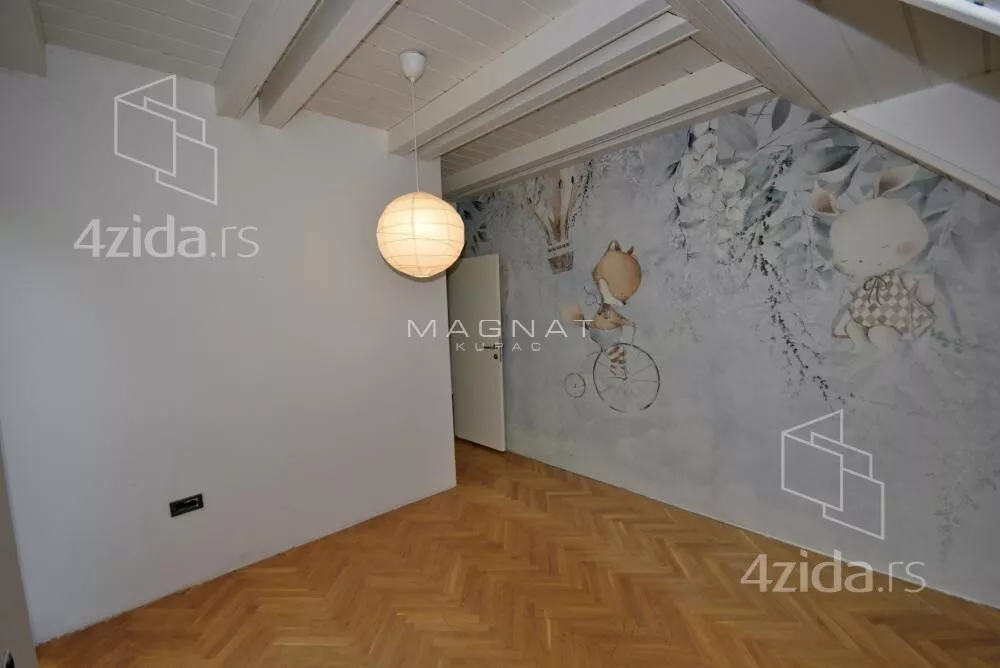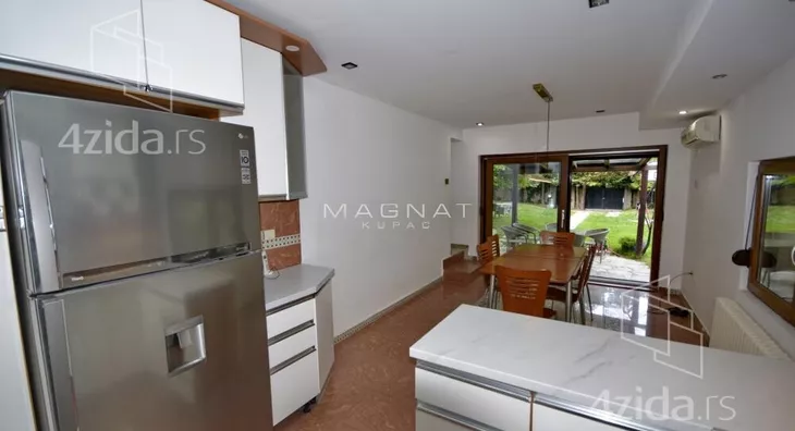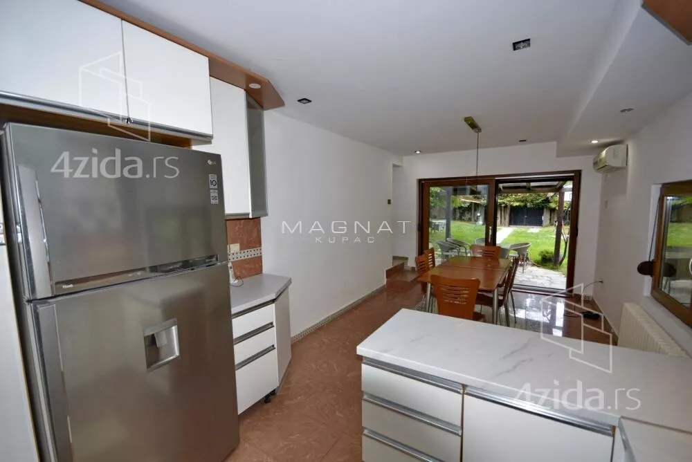 U najlepštem delu grada, u mirnoj i lepoj ulici nalazi se ova porodična kuća okružena zelenilom. Kuća ima predivno dvorište na kome se nalazi garnitura za sedenje, zidani roštilj na otvorenom, česma, basket tabla i dosta stabala koji ga okružuji. Dvorište je ograđeno, ima dva ulaza i jedna električna vrata za ulazak u garažu. Postoji pomoćni objekat koji se nastavlja na garažu i može biti višenamenski. Kuća je po strukturi četvorosobna, u donjem nivou ima prostran dnevni boravak, komfornu kuhinju sa trpezarijom koja ima izlaz na pokrivenu baštu, kupatilo i hodnik. U gornjem nivou ima tri spavaće sobe, gardarober, terasu i kupatilo. Postoji mogućnost dodatne opremljenosti, trenutno je polunameštena. Ova šarmantna kuća je idealna za porodice, nalazi se u blizini svih ustanova i objekata neophodnih za udoban gradski život, a potpuno izolovana od buke i gužve. Odiše mirom i sigurnošću. Za svaku preporuku! 7510 Oznaka na mapi pokazuje deo grada, ne i tačan položaj zgrade. Agencijska provizija 2% 50%