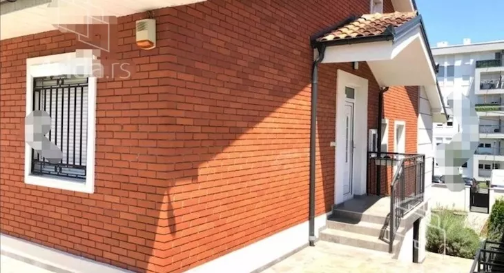 Kuća se nalazi u naselju Denino brdo, površine 183 kvm, na 5,61 ar placa, sa kombinovanim grejanjem na gas, pelet i struju. Sastoji se od prizemlja ( jedna prostorija i garaža ); sprat je iz nivoa - prvi nivo ( hodnik, kupatilo i tri sobe ) i drugi nivi ( kupatilo, kuhinja sa dnevnom sobom i trpezarijom i dve terasa ); i tavan. Podovi su kombinacija: parketa, laminata i granita. Kuća je luksuzna pametna kuća sa smart sistemom daljinske kontrole : grejanja, klimatizacije, alarmnog sistema i video nadzora. Obezbeđena dva parking mesta. Kuća je luksuzno opremljena ograđena zidanom ogradom.