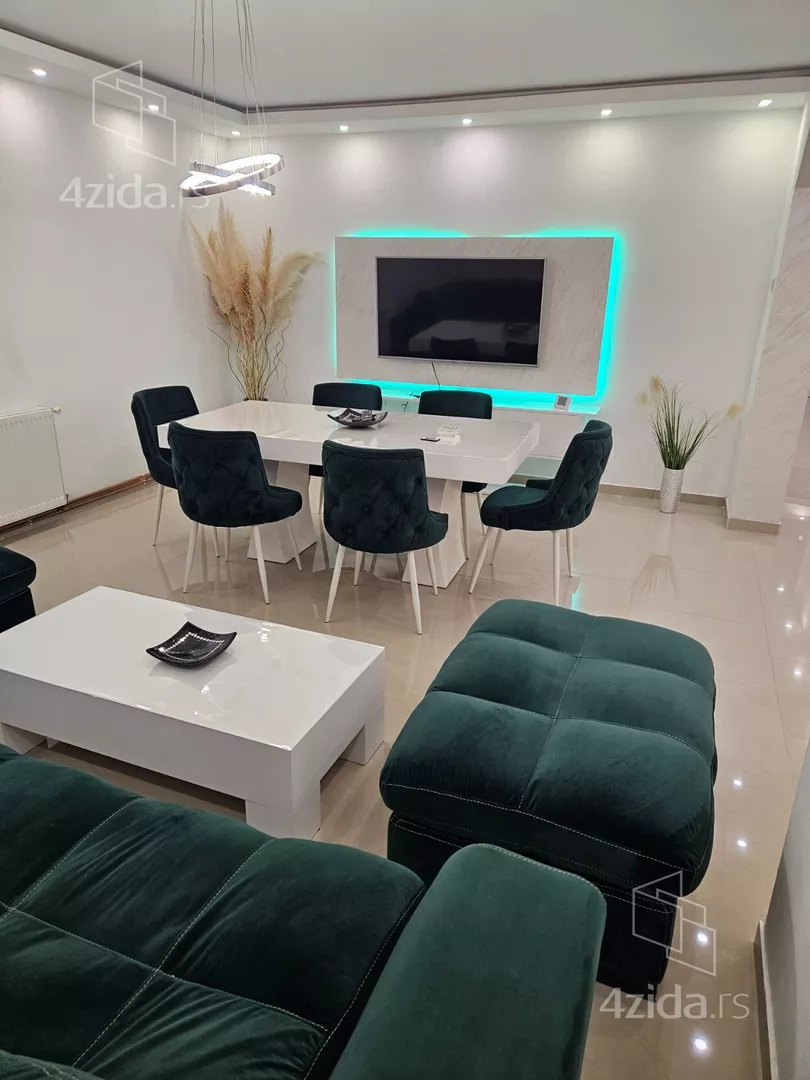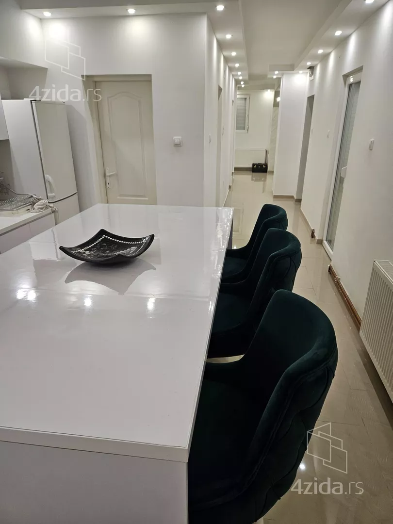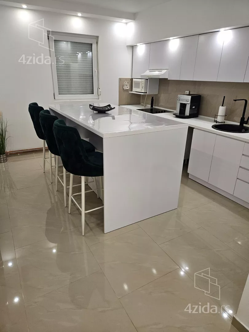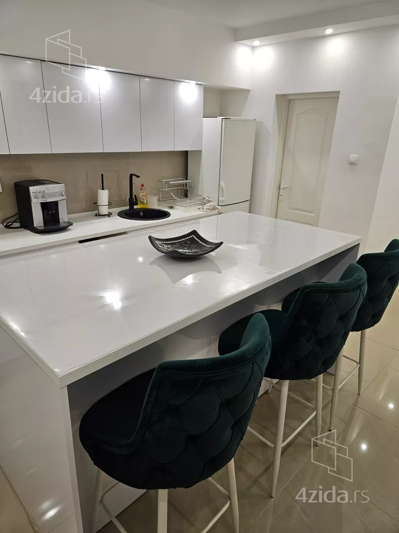 - Opremljenost: Namešteno - internet, TV, klima, centralna klima, veš mašina, kuhinjski elementi, frižider, zamrzivač, mikrotalasna rerna, šporet, rerna, plakar, kanalizacija