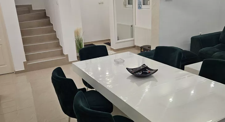 Izdaje se nameštena kuca u Zrenjaninu 220m2, naselje Dolja. Ulica Mite Milovanova. Kuca ima prizemlje i sprat. U prizemlju je dnevni boravak i kuhinja koji su odvojeni. Kuhinja ima izlaz na terasu koja je natkrivena, jedna spavaca soba, kupatilo, špajz i ostava. Na spratu se nalaze još tri spavace sobe i kupatilo. Kuca je opremljena nameštajem i tehnikom. Grejanje je centralno na gas. Postoji mogućnost dogovora.