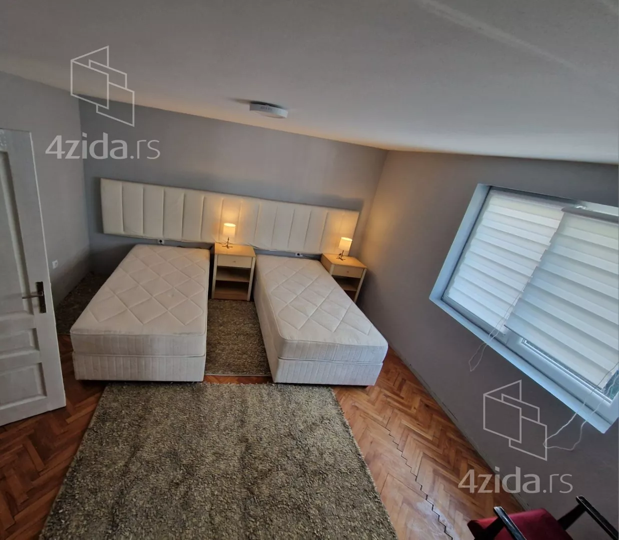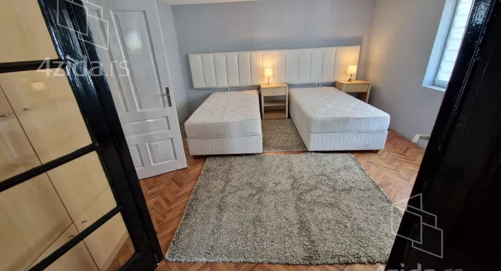 Samostalna kuća sa tri sobe, kupatilom, kuhinjom, dvorištem i parking mestima je pogodna za radnike i studente. Dozvoljeno je pušenje i dozvoljeni su kućni ljubimci. Obavezan je depozit od 300 evra, a režije se kreću od 3.000 do 9.000 dinara. Mesečni zakup iznosi 350 evra, a kuća se izdaje direktno od vlasnika.