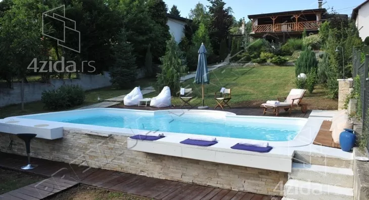 Kuća sa pogledom na Avalu, nalazi se u lepoj i mirnoj ulici. Uređeno kultivisano dvorištem, bogato zelenilom, urađeno po planu i projektu arhitekte. Kuća je građena prirodnim materijalima: kamen, drvo, cigla, metal. Centralno grajanje u svim stambenim jedinicama na struju ili na čvrsto gorivo. Sastoji se iz dve zasebne kuće od po 200m2, uknjižena 1/1 bez tereta. U dvorištu je bazen 4,5 x 8m a pored njega je pomoćna kućica. Četiri parking mesta. Kompletno ograđena betonsko-mermernom ogradom.