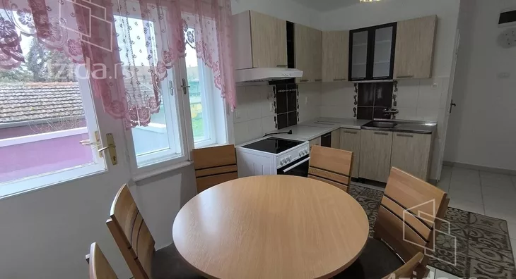 Izdaje se kuća u neprekinutom nizu sa nepodeljenim dvorištem - duplex površine 87 m2 koji se sastoji od dnevnog boravka , kuhinje sa terasom i toaleta na prizemlju , dve spavaće sobe , garderober i kupatilo na spratu i ostave u suterenu. Stan se izdaje namešten i opremljen belom tehnikom i nameštajem . Ima klima uređaj na svakoj etaži, toplanino centralno grejanje sa kontrolom i regulacijom potrošnje. Stambeni deo je potpuno renoviran ( zamena instalacija , kupatila, podova.... ) 2018. god. Cena: 300e + depozit. Tel: 024... (prikaži broj telefona) ili 061... (prikaži broj telefona) .