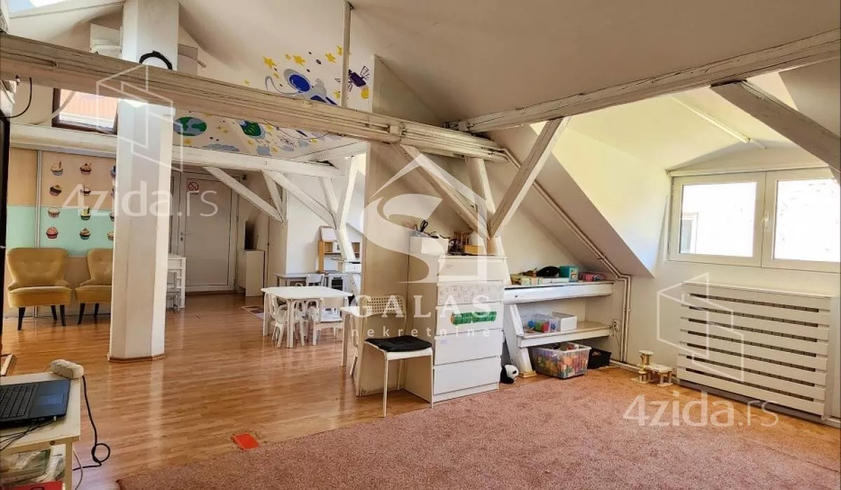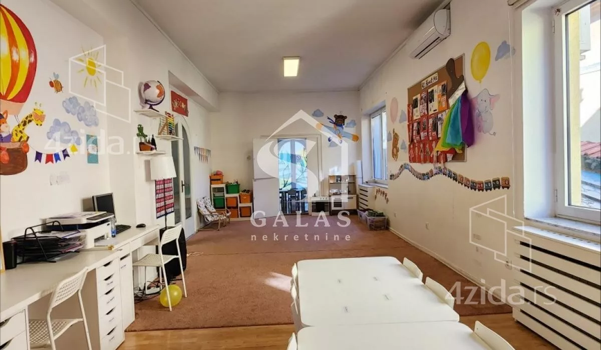Izdaje se kuća u mirnoj ulici na Vračaru, na svega par minuta od Hrama. Trenutno opremnjena za vrtić ali se izdaje ispraẓ̌njena od stvari. Kuća ima 3 nivoa od čega je prvi nivo površine od oko 115m2. U ovom nivou kao I u druga dva nivoa nalazi se jedna prostrana open space prostorija površine 31m2. Drugi nivo je površine od oko 135m2, plafoni su visine 3,5m i prostorije su izuzetno prostrane i sunčane. Takodje jedan openspace prostor od 45 m2. Poslednji nivo u potrkovlju ima 150m2, mogućnost da bude jedan veliki open space prostor trenutno od 45m2. Ukupno i mereno je veća kvadratura od knjižne koja iznosi 343m2. Svi nivoi su povezani odličnim novijim liftom. Ukupno ima 2 kupatila i 4 toaleta, 2 kuhinje i jako puno prostorija koje mogu lako da se pregradjuju i dobija više manjih prostorija ili pretvaraju u jos veci openspace prostor. Kuća poseduje i veći magacinski prostor kao I puno ostava napravljenih u uglovima potkrovlja tako da kosine u korisnom delu su dosta visoke. Ovo je kvalitetna kuća u kojoj je potrebno ulaganje samo za privodjenje nameni Vašoj delatnosti ili stanovanju. Krov je radjen pre 2 godine, fasada odlična. Grejanje centralno i jako dobro. Ima više ulaza i moze po potrebi da funkcioniše i kao više zasebnih celina. Iza kuće se nalazi popločano dvorište od nekih 30tak m2. Ispred kuće postoji prostor za parkiranje 2 automobila. Fotografije i opis ne mogu da dočaraju šta sve ova fenomenalna kuća pruža, zakažite gledanje i lično se uverite da Vam nudimo nekretninu koja je retko u ponudi. Useljiva 10. januara Agencijska provizija 50% od prve zakupnine.ID oglasa: 43033.