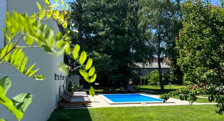 🌳 Dvoriste od 2.500 m²: bogata vegetacija, sistem za navodnjavanje, letnja kuhinja, bazen (dostupan tokom letnjih meseci), garniture za sedenje i uživanje, roštilj