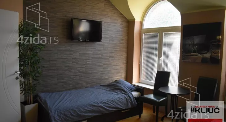 - Opremljenost: Namešteno - internet, interfon, TV, klima, veš mašina, sudo mašina, frižider, rerna, ležaj, plakar, kanalizacija