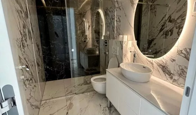 Sastoji se od dnevnog boravka, trpezarije, kuhinje, dva kupatila, tri komforne spavaće sobe, garderobera, sobe za kućni bioskop, vešernice, ostave za kuhinju i tehničke prostorije, odnosno ukupno 180m2 grejne površine.