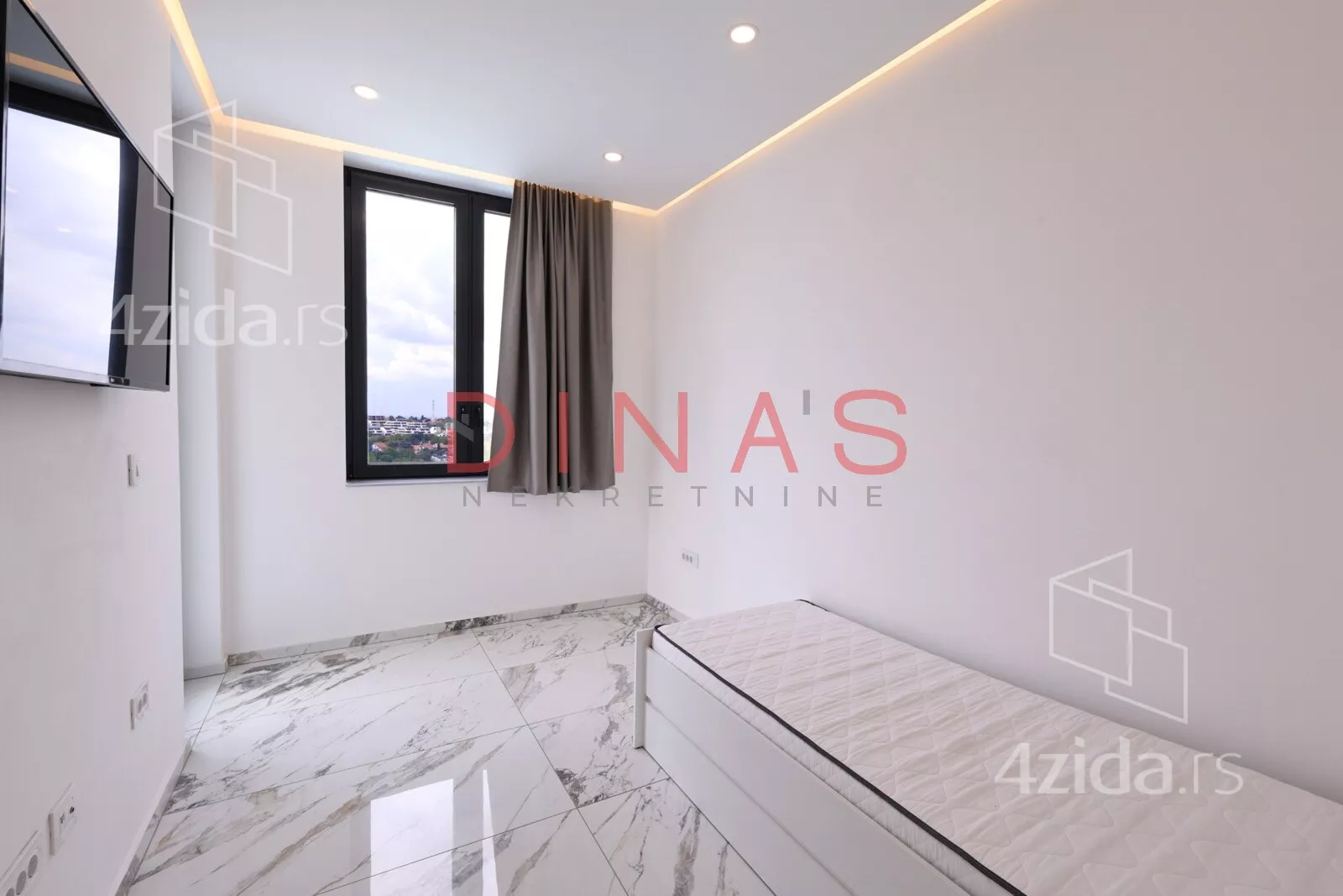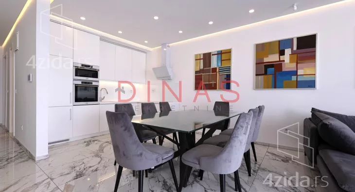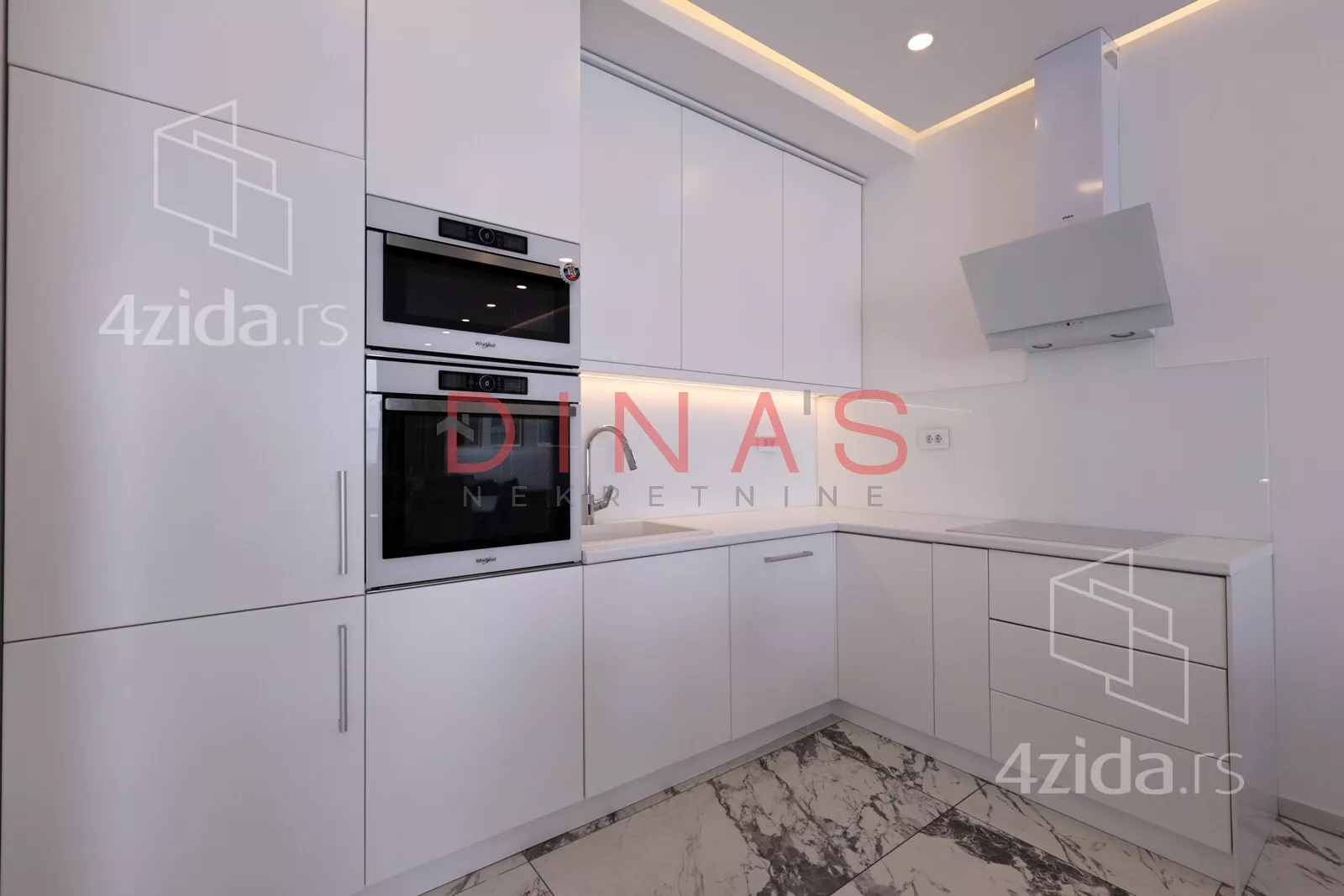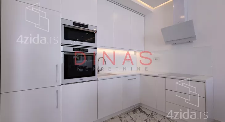 Kuhinja sa svim uređajima, veš mašine za pranje i sušenje. Video nadzor (8 kamera), alarmni sistem sa senzorima u svakoj prostoriji, povezan na telefon korisnika i policije. Ulaz na kod, kljuc i kontrolu pristupa. Useljiva od 01.10. Depozit obavezan u iznosu jedne zakupnine. Posrednička naknada 50% od jedne zakupnine, jednokratno.
