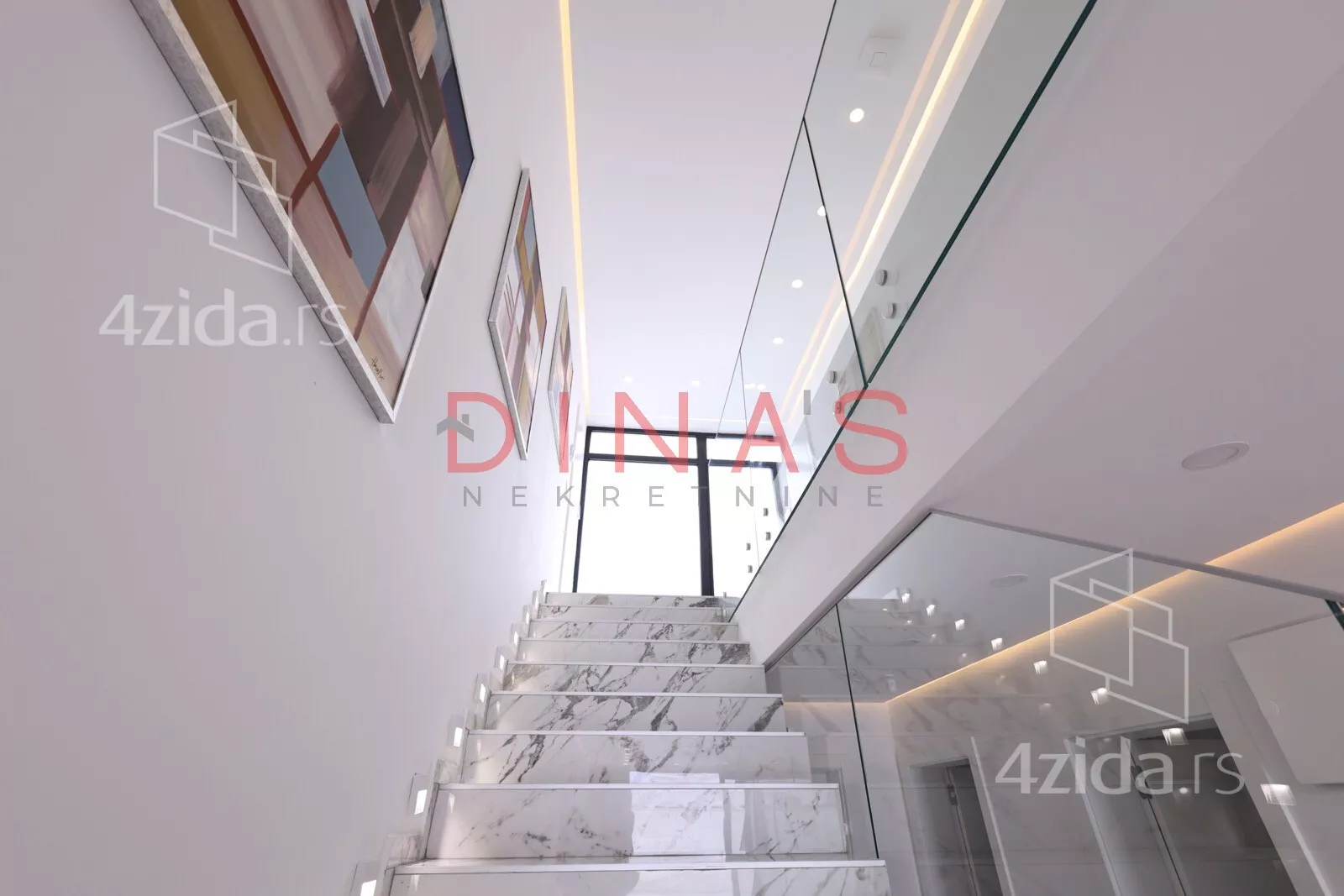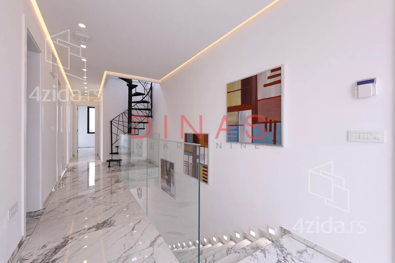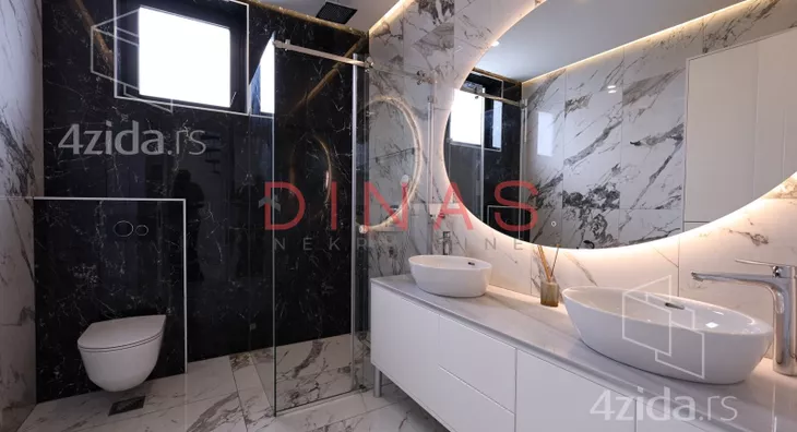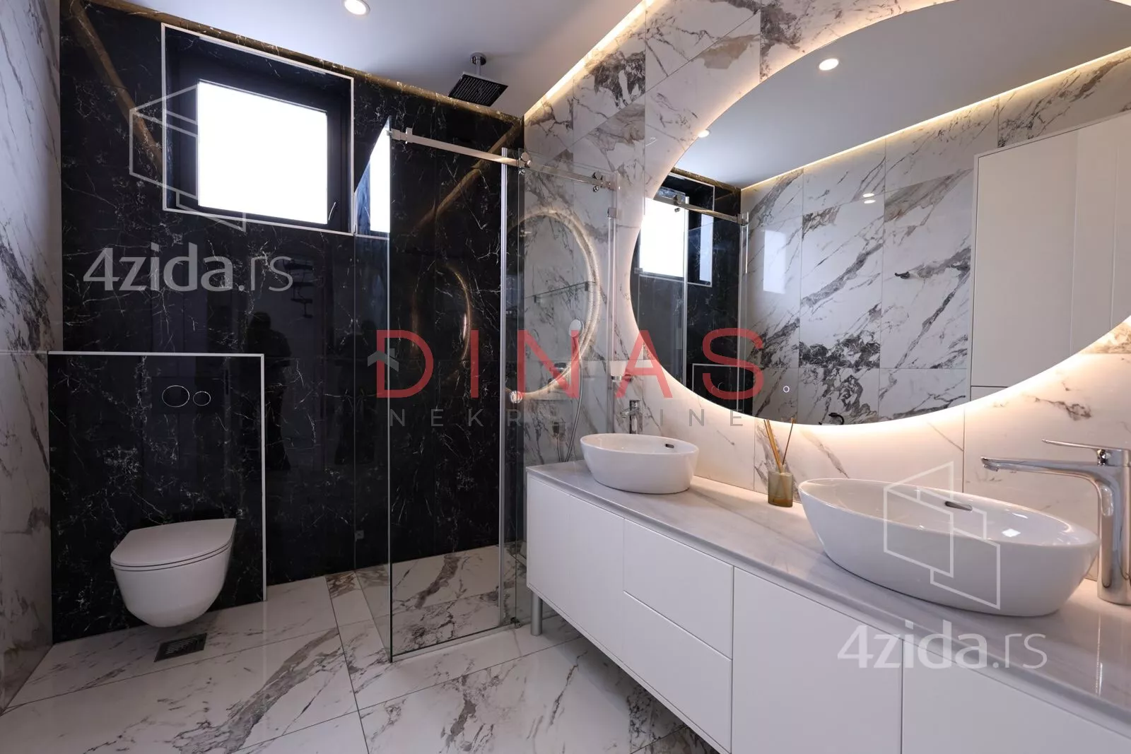 Kuća se nalazi u Sremskoj Kamenici, naselje gde se trenutno grade nove kuce i urbane vile. Bazen i baštenski nameštaj u dvorištu. Po strukturi dvojna. Novogradnja, useljiva odmah. Sastoji se od dnevnog boravka, trpezarije, kuhinje, dva kupatila, tri komforne spavaće sobe, garderobera, sobe za kućni bioskop, vešernice, ostave za kuhinju i tehničke prostorije. Opremljena podnim grejanjem u celoj kuci i split sistemom u svakoj prostoriji (grejanje i hladjenje).