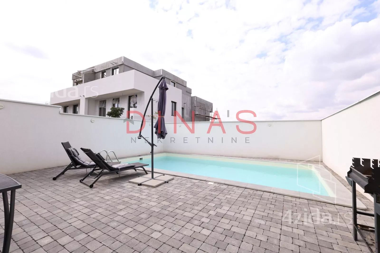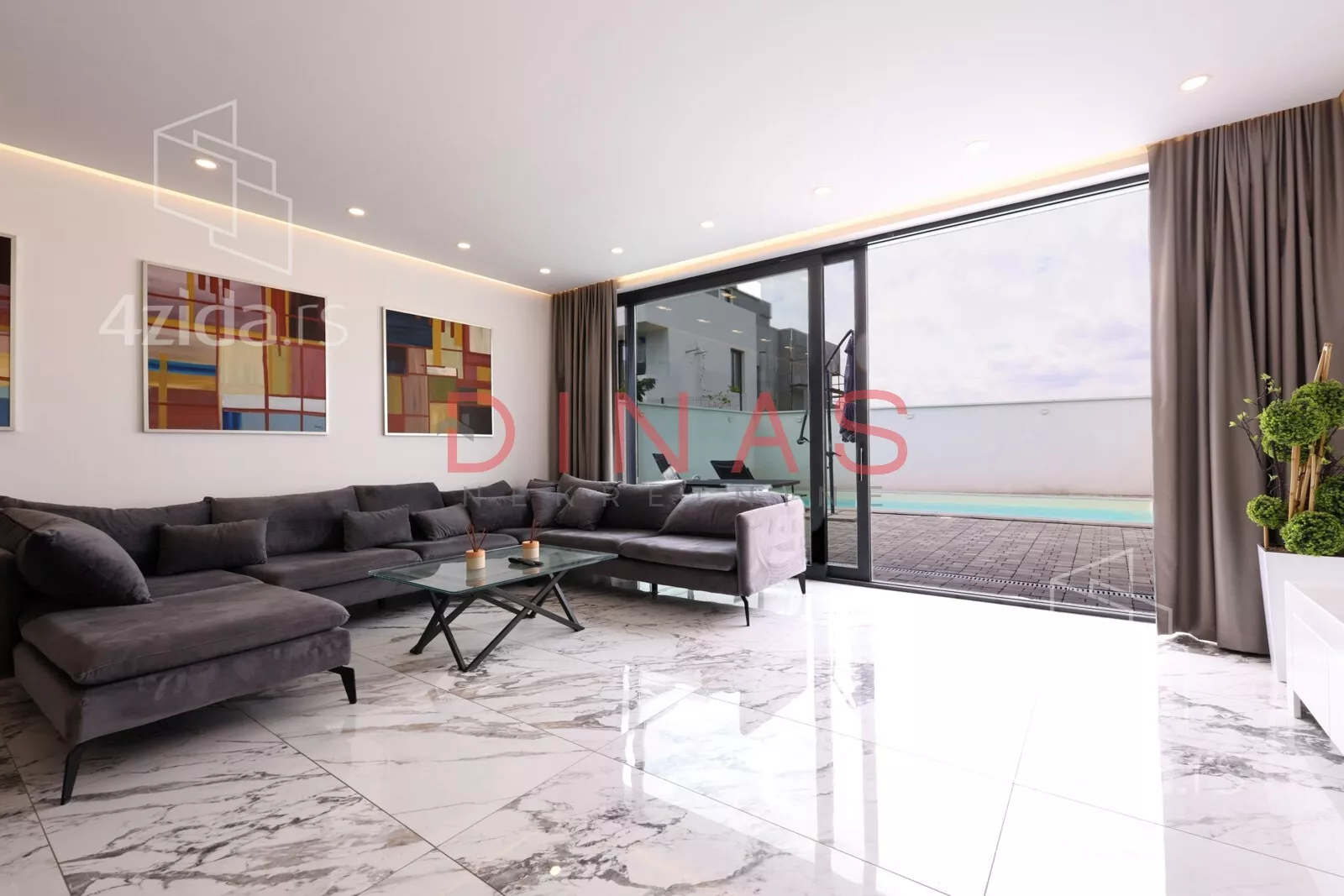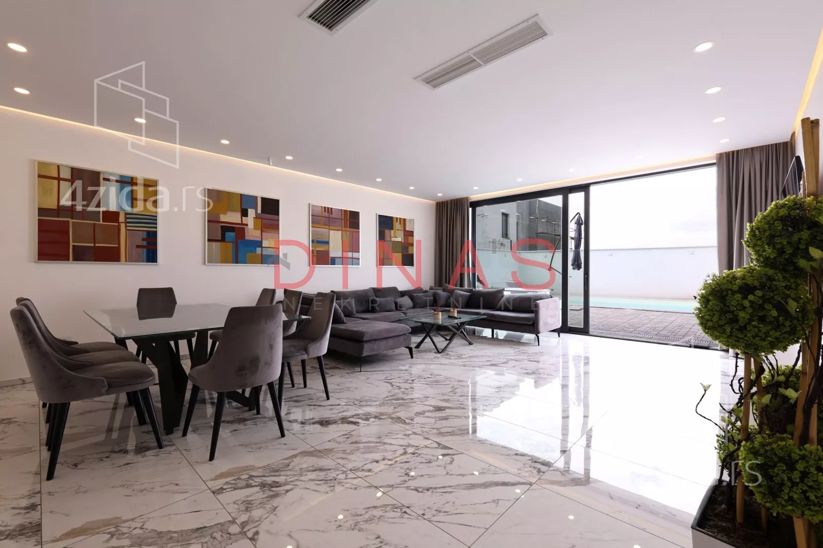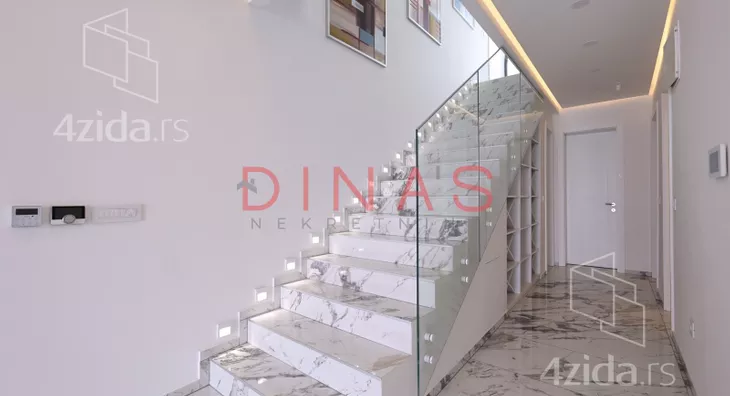 Kuća se nalazi u Sremskoj Kamenici, naselje gde se trenutno grade nove kuce i urbane vile. Bazen i baštenski nameštaj u dvorištu. Po strukturi dvojna. Novogradnja, useljiva odmah. Sastoji se od dnevnog boravka, trpezarije, kuhinje, dva kupatila, tri komforne spavaće sobe, garderobera, sobe za kućni bioskop, vešernice, ostave za kuhinju i tehničke prostorije. Opremljena podnim grejanjem u celoj kuci i split sistemom u svakoj prostoriji (grejanje i hladjenje).
