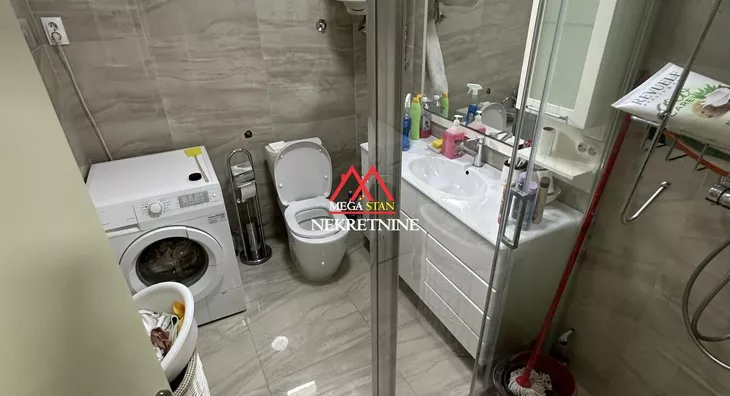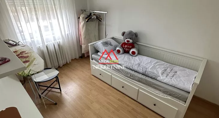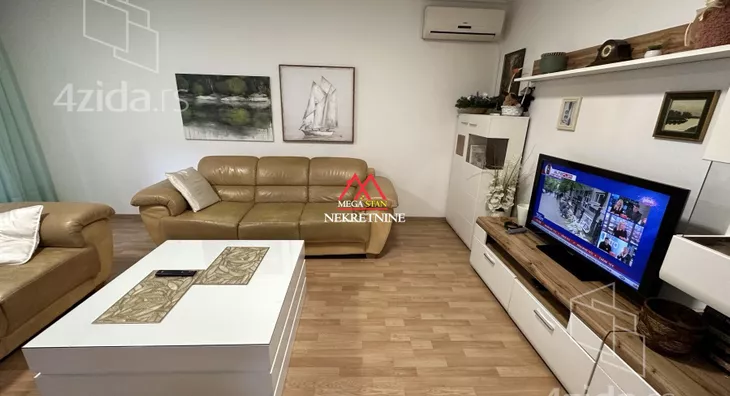 - Opremljenost: Namešteno - TV, klima, veš mašina, kuhinjski elementi, frižider, zamrzivač, šporet, rerna, ležaj, plakar, ugradni plakar