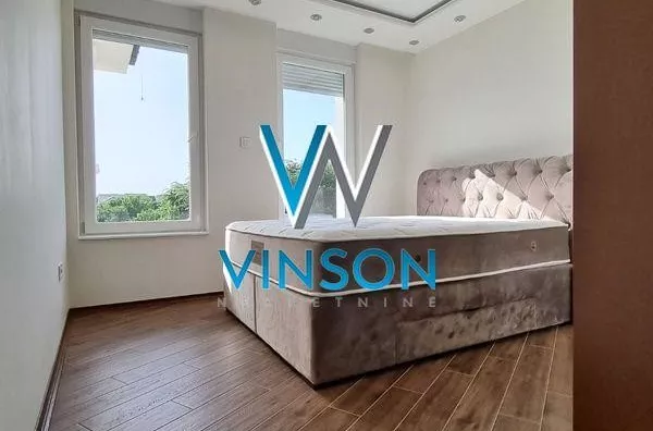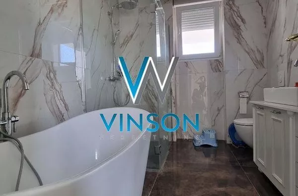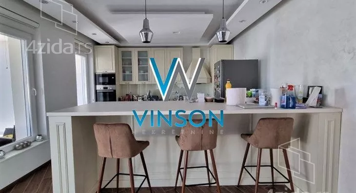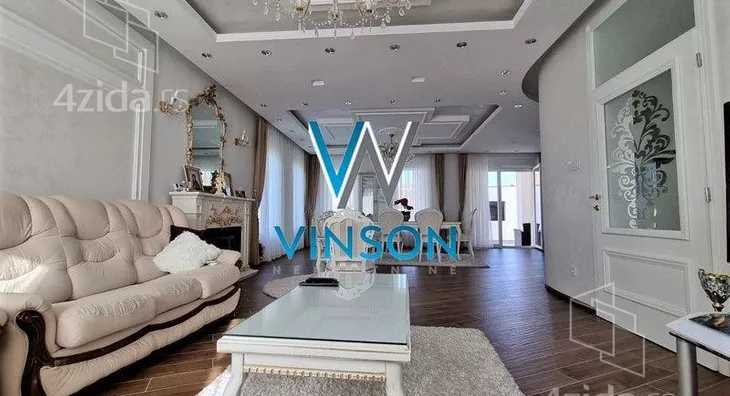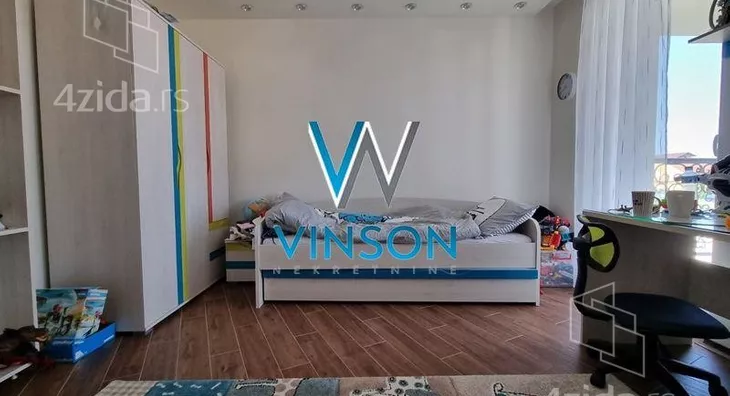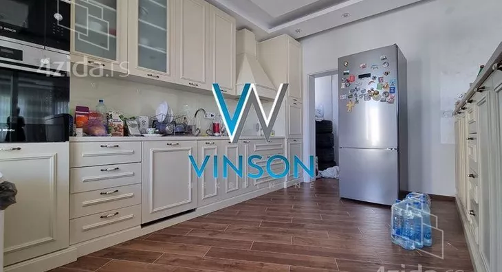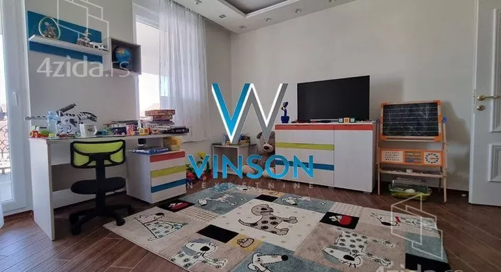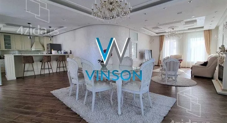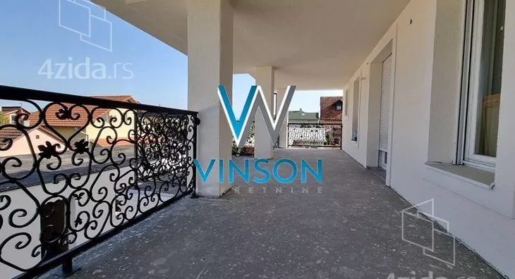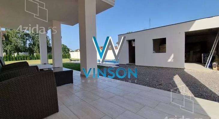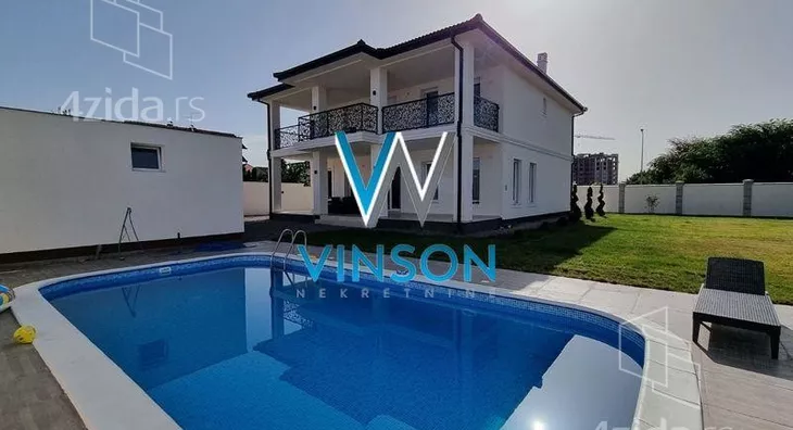 Veternik, Veternička rampa. Predstavljamo novu, luksuznu sedmosobnu kuću visokog kvaliteta gradnje ukupne površine 300 m2. Ovaj lep, moderan i komforan stambeni prostor čine dve etaže: prizemlje i sprat. Prizemlje kuće čine ulazni hodik, dnevni boravak sa trpezarijskim delom i kuhinjom, ostava, spavaća soba, kupatilo sa tuš kabinom i terasa. Gornja etaža rezervisana je za spavaći blok koji čine pet soba, dva kupatila i dve terase. Veliko ozelenjeno dvorište sa bazenom i pomoćnim prostorijama. Podno grejanje na gas. Izdaje se na duži vremenski period. Useljiva po dogovoru. (Vinson nekretnine, Novi Sad, Reg. br. posrednika: 1085)