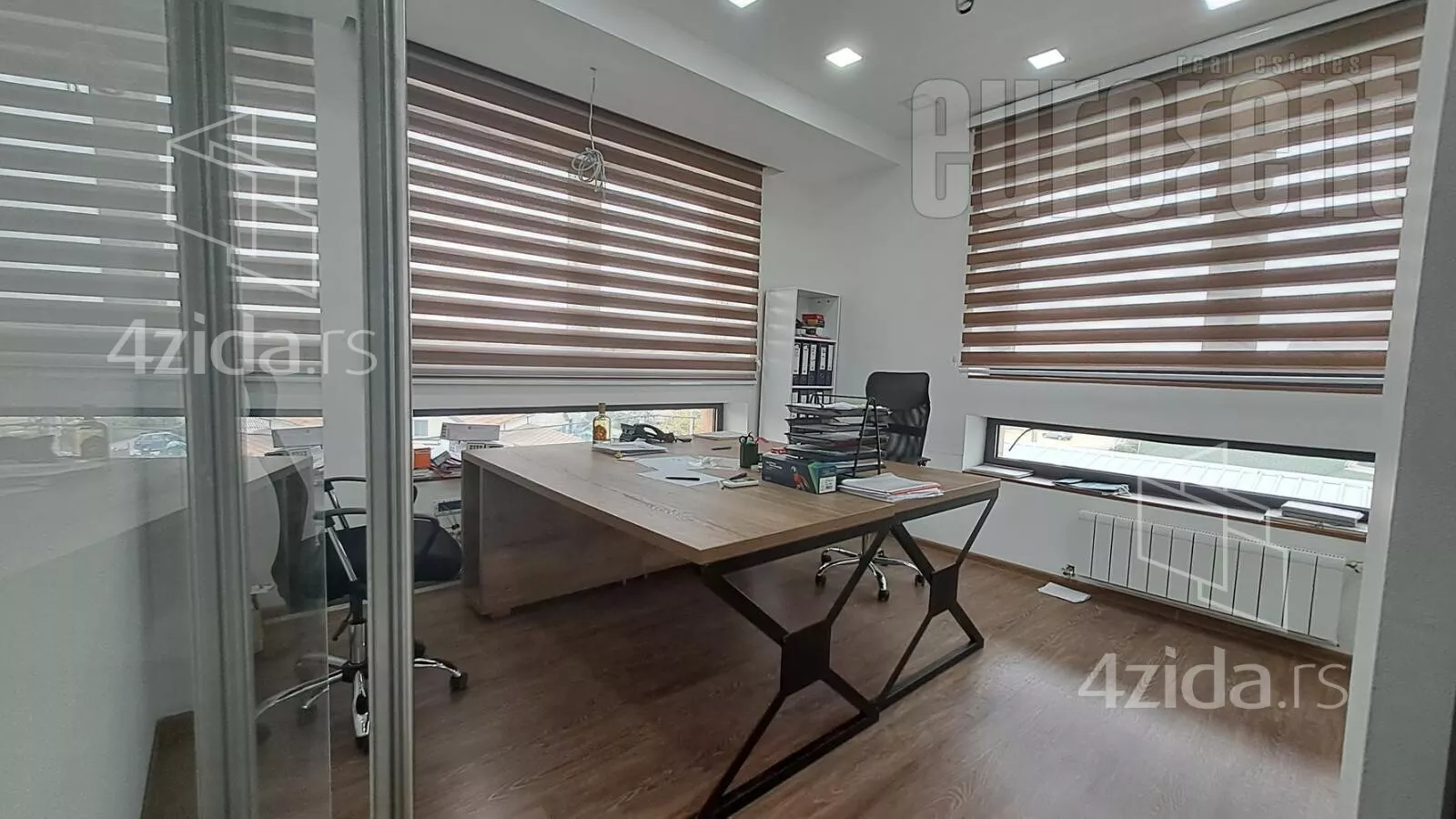 Ovaj PT objekat nalazi se na Novosadskom auto-putu, i blizini tržnog centra METRO. Sastoji se iz 2 celine, magacinskog prostora sa regalima od 450 m2 i moderne poslovne zgrade, na 3 nivoa od približno 300 m2. Magacinski prostor približne visine oko 6m, može da bude funkcionalan za skladištenje paletne robe, a poslovni deo može da primi oko 30-ak zaposlenih. Ispred je parking prostor za pet vozila. Grejanje u poslovnom prostoru je na pelet.