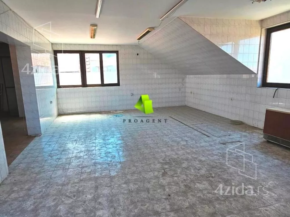 Izdaje se poslovni prostor u Apelovcu. Prostor je površine 200m2, sastoji se iz tri etaže Po+Pr+Pk. Podrum sačinjavaju hodnik i dve rashladne komore, prizemlje se sastoji iz ulaznog hodnika,, dve velike prostorije i dva toaleta dok potkrovlje sačinjava hodnik i jedna velika prostorija (open space). Na podovima i zidovima je keramika, stolarija je drvena. Sve etaže su povezane unutrašnjim stepeništem i liftovskim oknom. Pogodan je za različite delatnost, pekarsku proizvodnju i slično. Agencijska usluga za iznajmljivanje nekretnine je polovina jedne mesečne kirije, koja se naplaćuje jednokratno. Za više informacija o ovoj ili drugim nekretninama i zakazivanje razgledanja kontaktirajte agenta na broj telefona iz oglasa (poziv, sms, viber) ili putem e-maila. Kompletnu ponudu dostupnih nekretnina možete pronaći na našem sajtu. Agencija Proagent nekretnine je upisana u Registru posrednika pod brojem: 940.