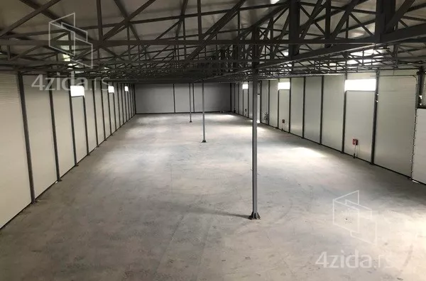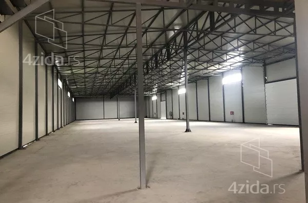 Sastoji se od kancelarijskog prostora od oko 300m2, magacina 2600m2, visine 8m, pod fero beton, dvoja rolo vrata sa velikim nadstresnicama.