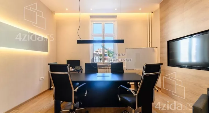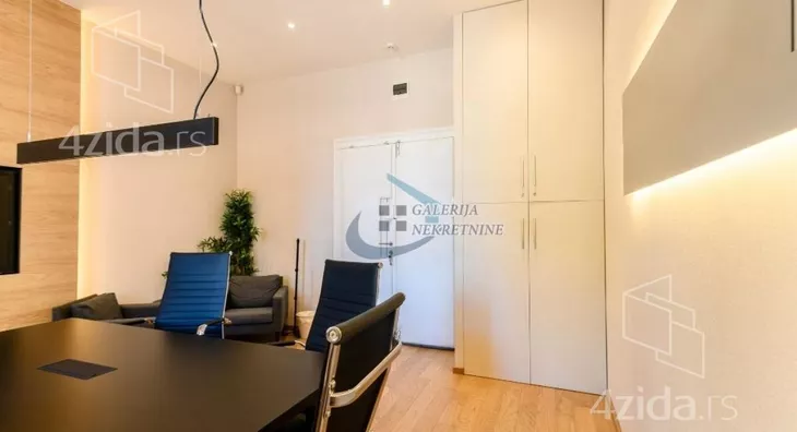 U prilici smo da Vam ponudimo u zakup luksuzan poslovni prostor koji se nalazi na visokom prizemlju od pet spratova sa liftom u kvalitetnoj stambenoj zgradi. Lokacijski sama zgrada je u neposrednoj blizini muzeja Jovana Cvijića i pozorišta Atelje 212. Sam poslovni prostor je svetao, jednostrano orijentisan, sunčan, bez buke iako je orijentisan ka ulici, luksuzan kompletno opremljen. Odlično organizovan prostor koji je osmišljen da se iskoristi maksimum postojeće kvadrature. Pored prostora se nalazi kuhinja, kompletno opremljena i mokri čvor. Ove prostorije su pod ključem i koriste se samo uz poslovni prostor.