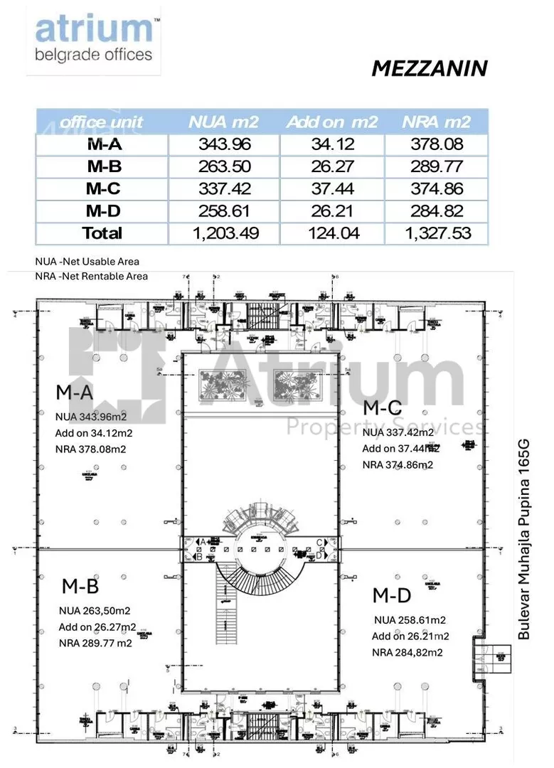 Zgrada Atrium Belegrade Offices nalaze se u Bulevaru Mihajla Pupina, na nekoliko minuta od Brankovog mosta i centra grada, 15 minuta od Beogradskog aerodroma, a u neposrednoj blizini je i Beogradsko-Zagrebačka autoput.