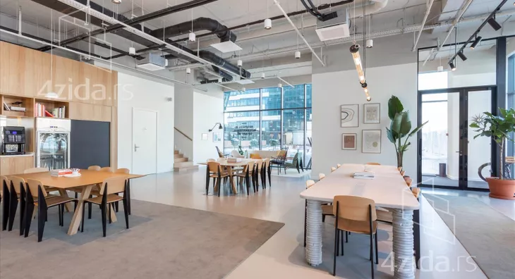 - Opremljenost: Namešteno - internet, TV, klima, centralna klima, ventilacija, kuhinjski elementi, frižider, mikrotalasna rerna, kancelarijski nameštaj