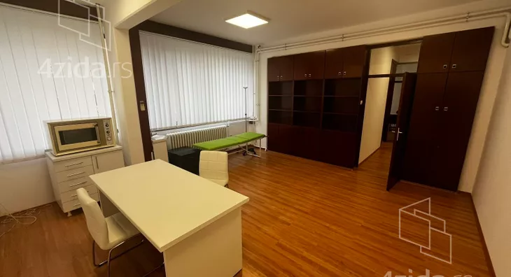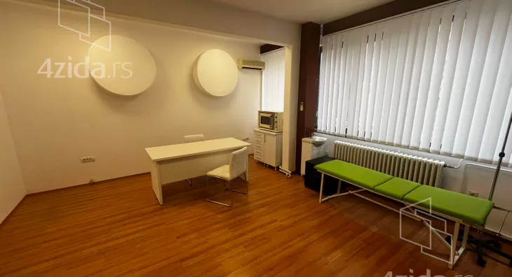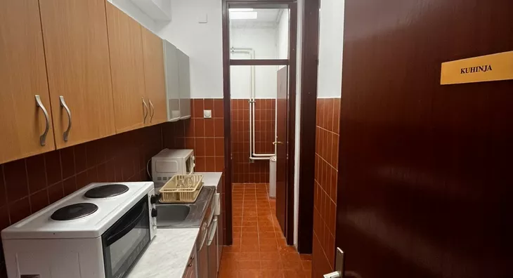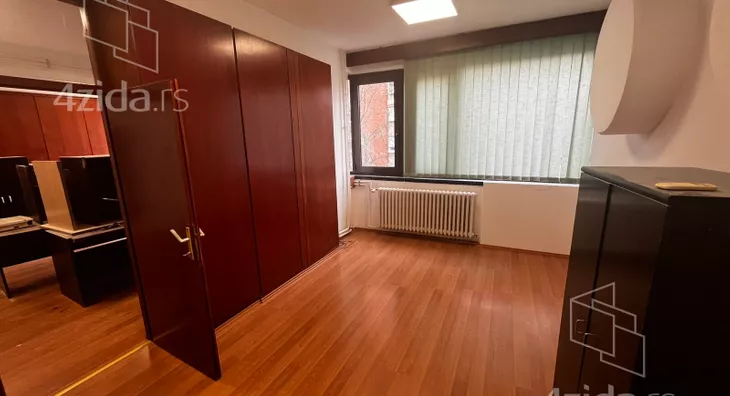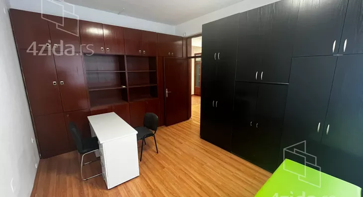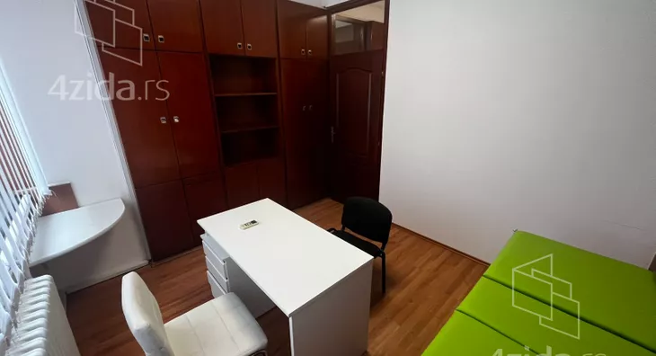 - Opremljenost: Polunamešteno - internet, kuhinjski elementi, frižider, plakar, ugradni plakar, kancelarijski nameštaj