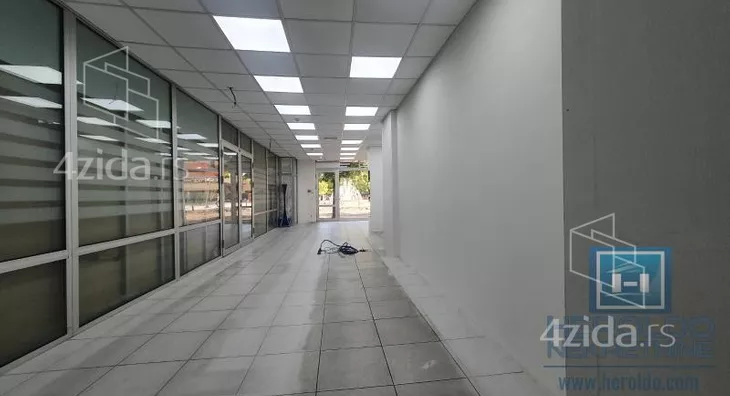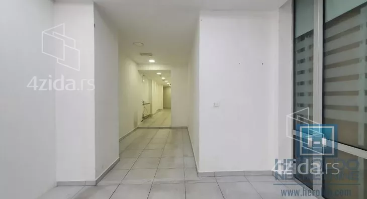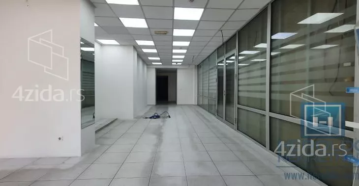 Poslovni prostor nalazi se u prizemlju stambene zgrade i poseduje prodajni prostor, kao i backoffice sa 5 kancelarija, 2 ostave, prostranog hodnika pogodnog za ugradne ormare i odlaganje dokumentacije i 2 mokra čvora.