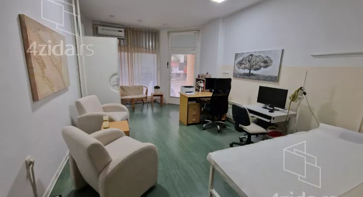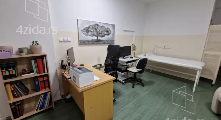 Pogodno za ordinacije,kozmetičke salone,agencije,salone lepote,škole jezika i ostale mnogobrojne uslužne delatnosti.Od prostorija ima hodnik,malu čekaonicu,dve prostorije(trenutno dve ordinacije)i dva sanitarna čvora.Grejanje na struju,cini grejači i klima.Mogućnost iznajmljivanja i sa medicinskim inventarom i opremom u slučaju zakupa za ordinaciju.