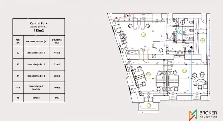 Poslovni prostor od 113m2 sa puno prirodnog svetla, dvostrano orijentisan u poslovnoj zgradi “A klase”