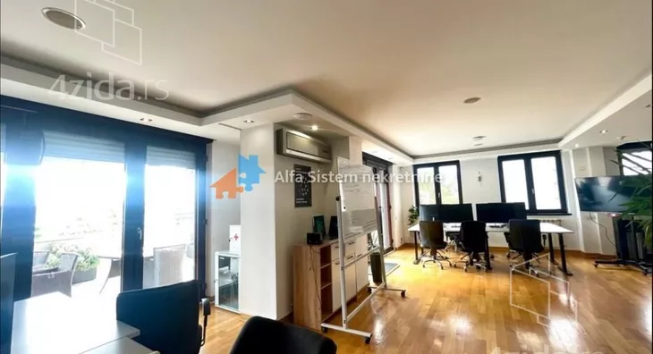 Izdaje se izuzetan i prostran četvorosoban dupleks poslovni prostor površine 186 m2, na jedinstvenoj lokaciji u blizini Hrama Svetog Save.