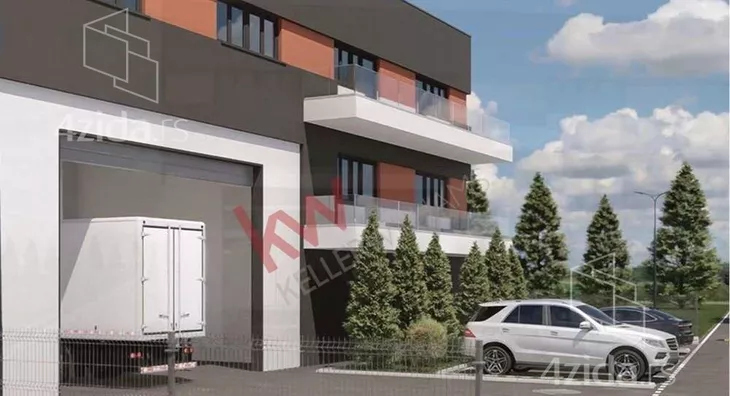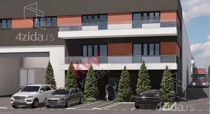 Ovaj poslovni objekat ukupne površine magacinskog dela 1950m2 i kancelarijskog 378m2, se prostire na tri etaže: