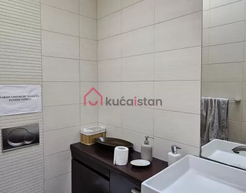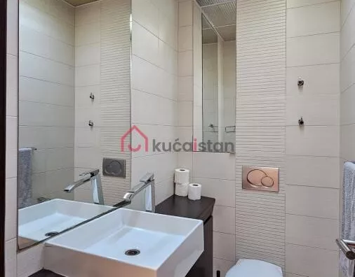 - Opremljenost: Namešteno - internet, interfon, TV, klima, veš mašina, sudo mašina, frižider, rerna, ležaj, plakar, kanalizacija