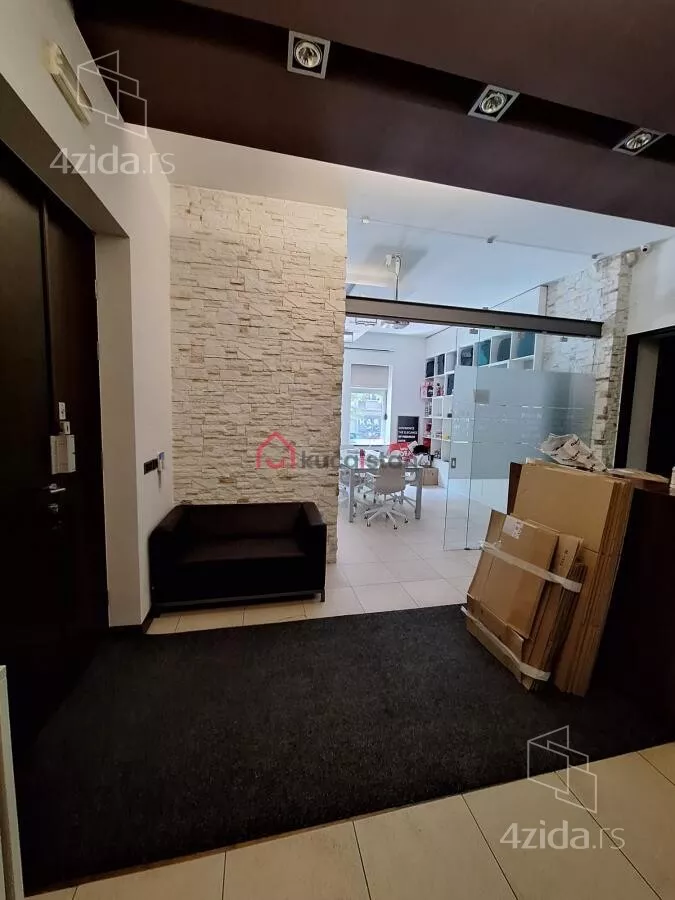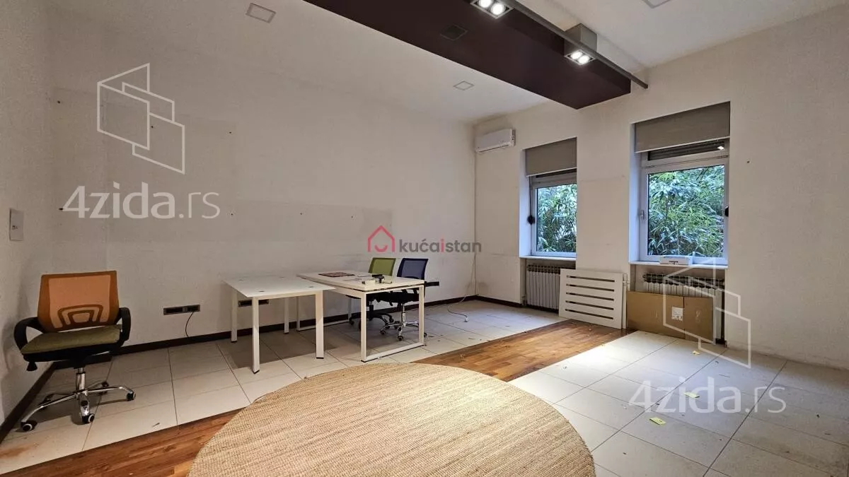 Grejanje je etažno. Prostor je lako prilagoditi i sa strane dijzajna. Sve je umereno i uređeno sa stilom, uklapa se u skoro sve zamisli dizajniranja jednog modernog poslovnog prostora. Pogled iz kacelarija je na zelenilo - dnevno svetlo. Privatno dvorište je zaista benefit sam po sebi - takođe u zelenilu sa baštenskim garniturama za posebno opuštanje. Idealan je za kancelarije, showroom, studio, edukativni centar, kliniku...
