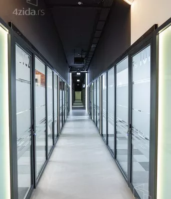 Smeštene u trospratnoj poslovnoj zgradi sa liftom i info pultom u prizemlju zgade, na samom ulazu u Elektronsku industriju. Najviši sprat nudi nezaboravan panoramski pogled. Pored kancelarija sadrži i salu za sastanke, kuhinju, caffe zonu opremljenu modernim stolovima i udobnim stolicama. Prostor je obezbeđen kontrolom pristupa, kao i video nadzorom. Priključen je optički internet.