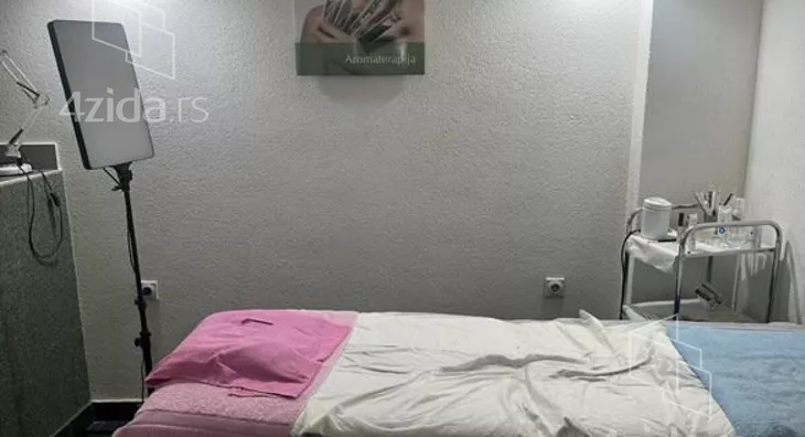 Izdaje potpuno namešten kozmetički salon kod Gradske Bolnice. Površina lokala je 45m2 i sastoji se iz dve prostorije, mini čajne kuhinje i toaleta. Lokal se nalazi u prizemlju stambene zgrade. Ulični je i portal omogućava isticanje reklame. Grejanje je eletrično, putem klima uređaja ili norveških radijatora. Salon je kompletnom opremom i spreman za rad.