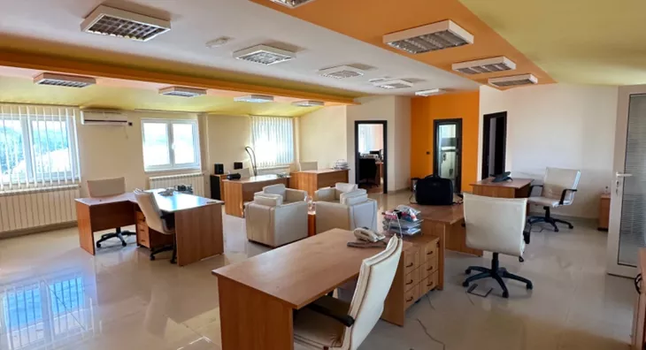 Poslovni prostor koji obuhvata magacinsku halu (1000m2 neto), dva magacina (jedan 220 kvadrata sa ugrađenim regalom i drugi od 340 kvadrata koji su međusobno povezani) i opremljeni poslovni prostor na dva sprata, kamionsku vagu (50t bruto), parking, ogradu, 2000m2 asfaltiranog prostora na 55 ari placa.