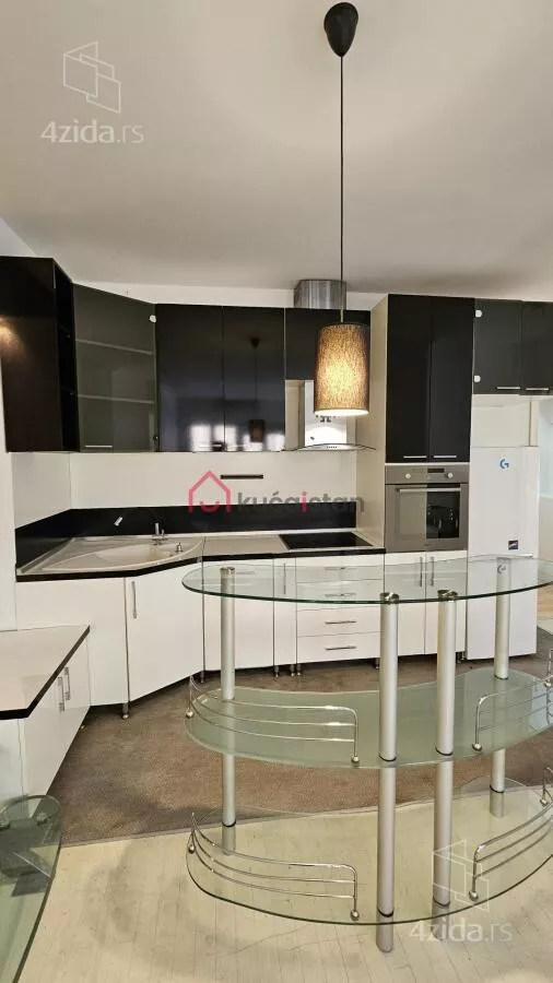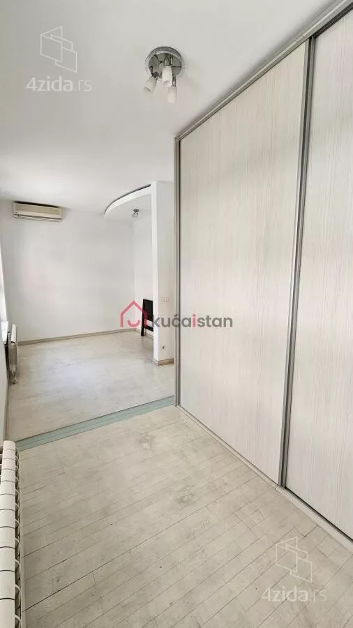 - Opremljenost: Prazno - internet, interfon, TV, klima, veš mašina, sudo mašina, frižider, rerna, ležaj, plakar, kanalizacija
