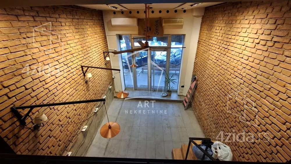 Lokal se nalazi na prometnoj lokaciji, sastoji se od prizemnog dela od 57m2 (podeljenog u dva dela) i dve funkcionalne galerije od 25m2 . Visina u lokalu je 4 metra. Postoji mogućnost pravljenja bašte ispred lokala, ima dva toaleta. Pogodan je za razne namene. Grejanje i hlađenje je pomoću klima uređaja Uknjižen na vlasnika,bez tereta. Agencijska provizija 50% vrednosti jedne mesečne zakupnine Agent: Nebojša Bucalo br.licence 509 Art nekretnine d.o.o.,Beograd,reg.br.339 011... (prikaži broj telefona) DR11 .