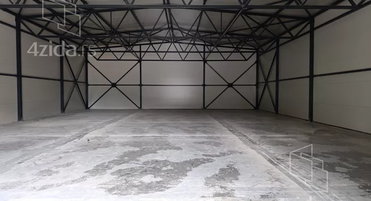 Veličina hale je 398m2, širina je 16m, a dužina 25m. Visina je 4,5m. Širina ulaznih vrata je 3,5m, a visina 4m.