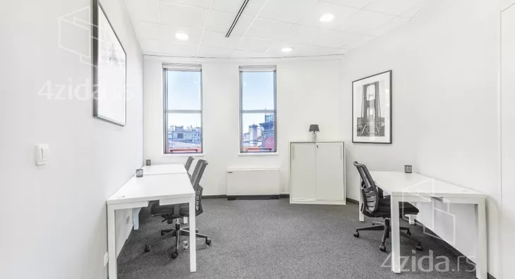 Ova ponuda uključuje privatnu opremljenu kancelariju za 3 osobe i 60 kvadratnih metara zajedničkih prostorija: sale za sastanke, otvoreni coworking prostor, biznis lounge, kafe i recepciju sa kancelarijskom opremom.