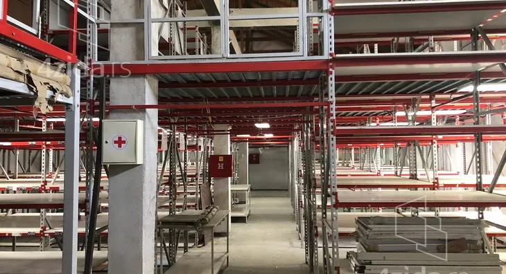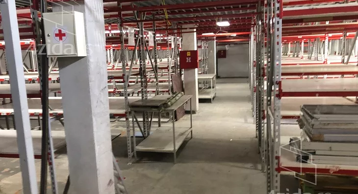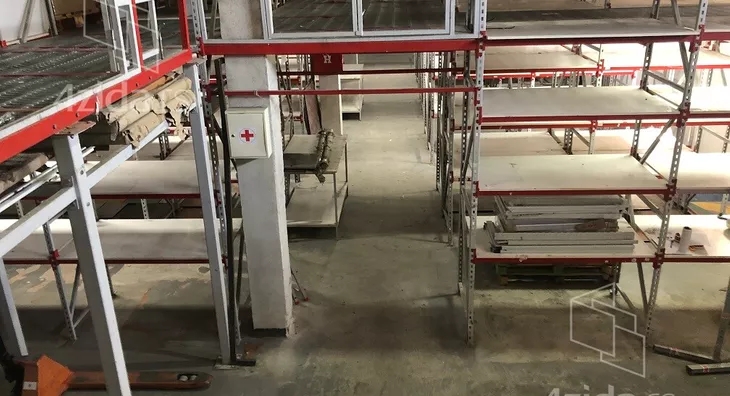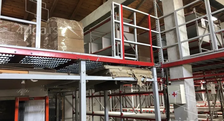 Magacin 500m2 vec opremljen regalima, pogodan za distribuciju razne robe siroke potrosnje.